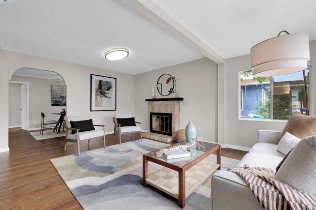 This beautifully updated single-story home offers 1,594 sq. ft. of living space on a 5,000 sq. ft. lot, blending modern comfort with classic charm. Step into the inviting living room featuring refinished hardwood floors and a beautiful fireplace, perfect for cozy evenings. The updated kitchen boasts stone countertops, new stainless steel appliances, stylish cabinetry, and tile flooring, all seamlessly opening to the dining area — ideal for family gatherings and entertaining. This spacious home features four bedrooms and two full bathrooms, providing ample room for family or guests. Enjoy the fresh interior paint throughout, new carpet in select areas, and thoughtful upgrades that make this home move-in ready. Outside, the hardscaped front yard offers great curb appeal, while the backyard features fruit trees, a covered patio perfect for entertaining, and side access with plenty of off-street parking plus a detached garage. Located within walking distance to Logan High School, shopping, and restaurants, this Union City gem offers convenience, comfort, and community — all in one desirable location!