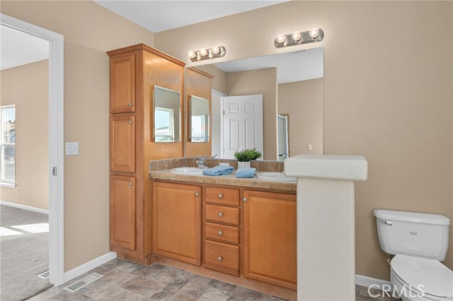 Located within the highly-desired Upland Eldorado 55+ community, this 2,158 square foot home will amaze you. It has a beautiful amount of light and 4 bedrooms and 2 bathrooms and it's just the home you've been waiting for. A great location on a corner lot in a quiet cul-de-sac with gorgeous mountain views from the deck as well as the kitchen and dining room. Inside the home you will find it has been well maintained and there are so many awesome features. The primary suite has a walk-in closet as well as an en suite bath with two sinks, linen storage and a separate tub and shower. The kitchen is open to the family room and is fit for a chef with a Viking range, Bosch dishwasher, prep island, roll-out drawers and a butler's pantry! There is a formal living and dining space as well as an open area between the bedrooms that could be utilized as an office or sitting area. The laundry room comes complete with washer and dryer and there is space for a second refrigerator or freezer. Some of the additional features of this home are: Freshly painted interior, new roof in 2022, new garbage disposal, newer a/c and water heater. There is also a water filtration system, shed, accessibility ramp and garden bed with water. This park is well-maintained by all the residents and has rent control for your peace of mind. The clubhouse common area is complete with commercial kitchen area, billiards, indoor spa, large pool and shuffleboard.