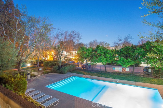 Why rent when you can own? One bedroom, one bath condominium in Valencia's popular Old Orchard Condominium community. Walk in to an open space concept. Laminate flooring in the living room and dining area. Open kitchen. Meals can be enjoyed at the breakfast bar, at a table in the large eating area, or out on the balcony overlooking the swimming pool. Stainless steel refrigerator, stove, dishwasher, and microwave. The bedroom has two large closets. Central AC. One carport space is assigned and there is also plenty of street parking. Located in the back of the complex, away from the traffic on Lyons Ave. Amenities of the HOA include pool, spa, tennis court, gym, and club house. Water and trash are also paid by the HOA. Old Orchard Park is just across Avenida Rotella, and has a playground and basketball court.