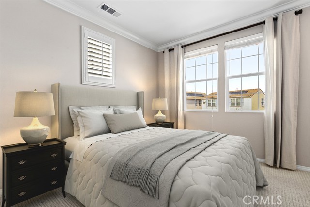 Welcome to this stunning Aria Plan III Model home, ideally situated on a premium corner lot in the highly sought-after West Creek community of Valencia! Built in 2015 and showcasing custom builder upgrades, this former model home combines luxury, comfort, and style in every detail. The open-concept floor plan features 4 spacious bedrooms, 3 full baths, and a bright living area filled with natural light. The gourmet kitchen boasts granite countertops, maple cabinetry, stainless steel appliances, and a large island that opens to the dining and family room—perfect for entertaining. A full bedroom and bathroom downstairs offer flexibility for guests, in-laws, or a private home office. Upstairs, you’ll find a generous loft and a beautiful primary suite with a spa-inspired bath and walk-in closet. Designer touches, upgraded flooring, and refined finishes throughout elevate this home’s modern appeal. Enjoy one of the largest lots in the Aria collection, featuring a rare grassy front area, a spacious landscaped backyard, and unobstructed views of the surrounding hills—ideal for relaxing or hosting gatherings. As a resident of West Creek, you’ll have access to resort-style amenities including sparkling pools, spas, BBQ areas, playgrounds, and a private clubhouse. The home is walking distance to top-rated schools, scenic paseos, and parks, with shopping, dining, and freeway access just minutes away. Low HOA Dues! A rare opportunity to own the Model one of Aria’s most desirable plans—move-in ready and truly a must-see!