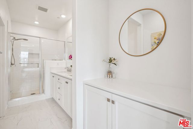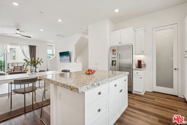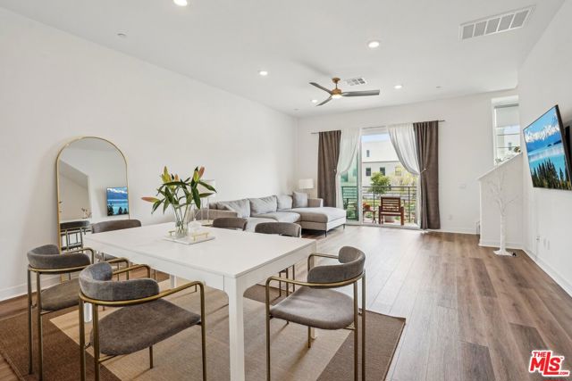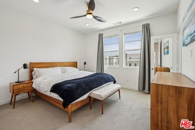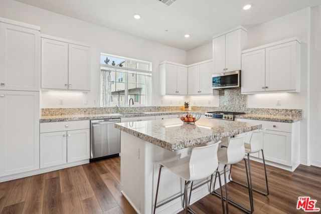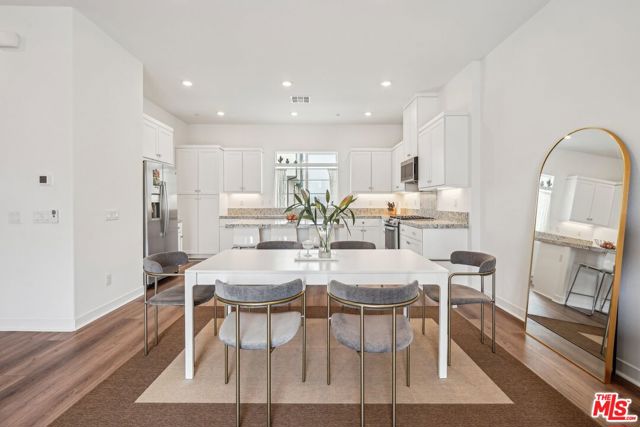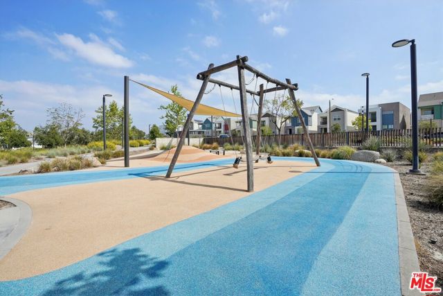 Tucked inside the vibrant FivePoint community, this beautifully updated tri-level home offers the perfect blend of modern style and everyday comfort. Entry through the front door or attached garage leads to the bright, open main living space with a welcoming atmosphere. A sunlit living area opens to a private patio, while the dining space flows into a sleek kitchen featuring white cabinetry, quartz countertops, stainless steel appliances, a spacious pantry, and peekaboo views of the surrounding outdoors. Upstairs, two generously sized bedrooms each feature their own ensuite bathrooms, with a conveniently located laundry area nearby. The attached two-car garage includes an EV charging station for added convenience. Enjoy resort-style amenities including three pools, a hot tub, shaded cabanas, BBQ area, a playground, bike trails, a community garden, and a weekly farmers market. With shopping, dining, Six Flags, and freeway access just minutes away, this townhome offers more than a place to live, it's a lifestyle waiting to be enjoyed!