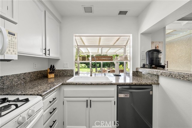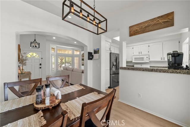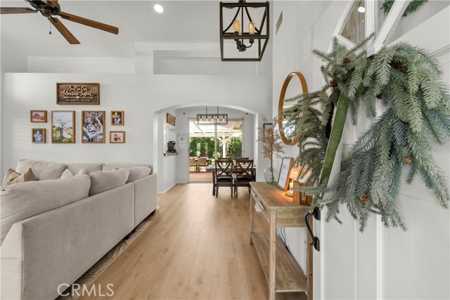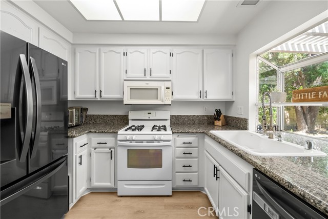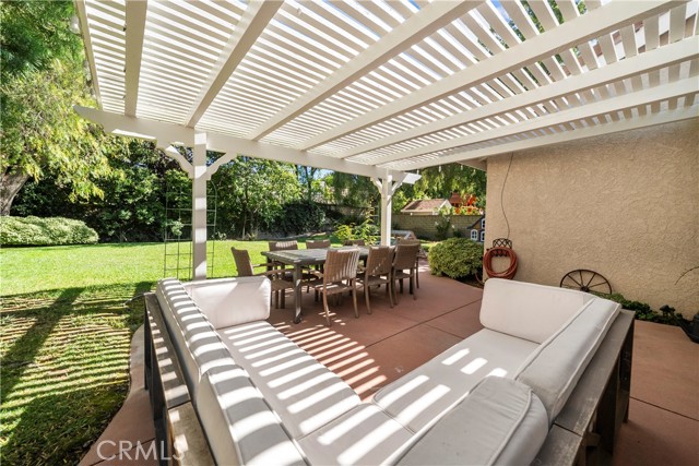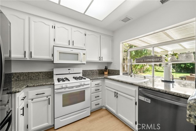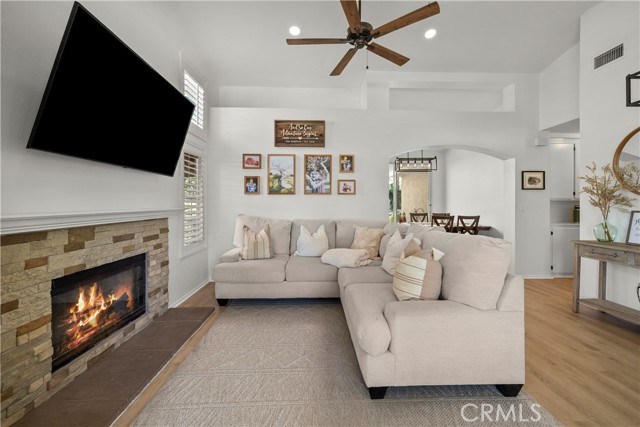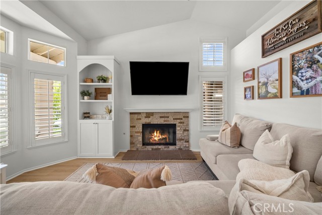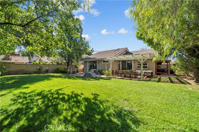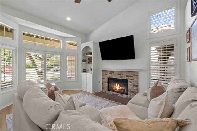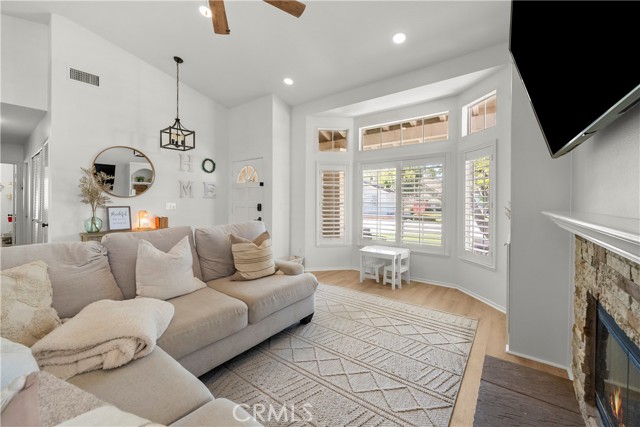 Don’t miss this rare opportunity to own a charming single-story home in the highly sought-after Northbridge community of Valencia! Nestled at the end of a quiet cul-de-sac in the Country Gate neighborhood, this meticulously maintained 2 bed, 2 bath home sits on an expansive nearly 8,000 sq ft lot—offering ample room for future expansion and large outdoor entertaining. Find brand-new flooring throughout with waterproof laminate wood flooring in the main living areas and carpet in the bedrooms, along with fresh neutral interior paint. The light and bright living room features a custom stone fireplace, recessed lighting, plantation shutters, and a new custom built-in for added storage. The kitchen has granite countertops, neutral painted cabinetry, and a sunny garden window with views of the beautiful manicured backyard. The adjacent dining area is perfectly situated for everyday meals and entertaining. The primary suite offers a wall-to-wall closet, a large slider with direct access to the backyard patio, a reglazed shower, and a stylish sliding barn door for bathroom privacy. The secondary bathroom includes a skylight, and the indoor laundry room adds everyday convenience. Outside, enjoy a large private backyard with mature trees and landscape, refreshed patio cover, a concrete patio that wraps around 3 sides of the house for plenty of space for outdoor furniture and social gatherings. The adorable pavered front porch with a covered entry adds to the home’s curb appeal. You’ll love the attached 2-car garage with built-in cabinets providing ample storage with additional storage in the attic. Never worry about parking with an oversized driveway that easily accommodates four cars. Additional updates include new lighting fixtures in the entry and dining room, new interior door hardware, and ceiling fans in the living room and both bedrooms. One of the greatest features of owning this home is the access to the endless HOA amenities, including three pools, spas, a clubhouse, basketball and tennis courts, and scenic paseo trails leading to award-winning schools, nearby shopping, and restaurants. This home truly checks all the boxes—location, lifestyle, and comfort. Schedule your showing today!