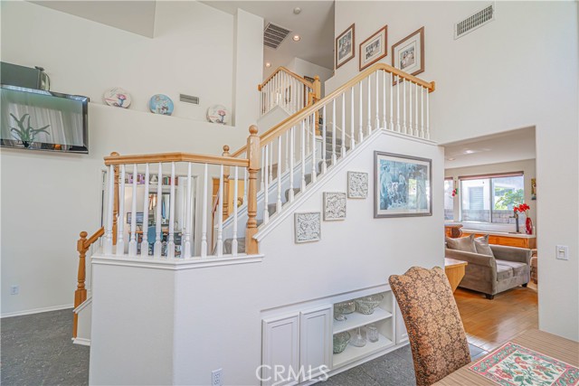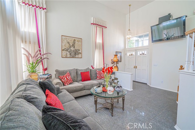Home Is Where The Heart Is with this stunning former model home tucked away on a quiet cul-de-sac in the desirable Valencia Northbridge community. Featuring 4 bedrooms and 3 full bathrooms across 2,114 sq ft of living space, this thoughtfully designed residence offers both style and comfort. Inside, you’ll be welcomed by soaring vaulted ceilings, expansive windows, and abundant natural light that highlight the formal living and dining rooms. The cozy family room, complete with a brick fireplace, creates a warm retreat for gatherings. The floor plan includes a convenient downstairs bedroom and bath, while upstairs you’ll find three additional bedrooms, each with ceiling fans, including a spacious primary suite with vaulted ceilings and a private en-suite bath. The heart of the home extends outdoors, where the kitchen and breakfast area open to an expansive pie-shaped lot of nearly 9,000 sq ft. A full-length covered patio provides the perfect setting for dining and entertaining, while the lush yard offers ample room for play, or gardening. Additional features include hardwood floors, a dedicated laundry room, and a 3-car garage offering generous storage space. Living in Northbridge means enjoying miles of greenbelt paseos and pedestrian bridges that connect you to parks, schools, and neighborhood centers. Residents also enjoy access to two exclusive community recreation centers with pools, spas, tennis courts, playgrounds, and clubhouses. All of this, just moments from top-rated schools, shopping, and dining. This is truly a rare opportunity to own a former model home on one of the best lots in Northbridge — a home where heart and lifestyle meet.