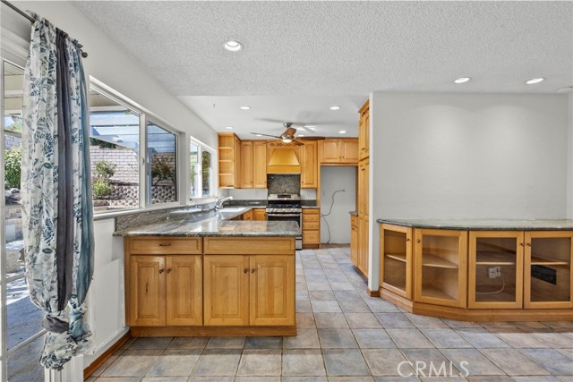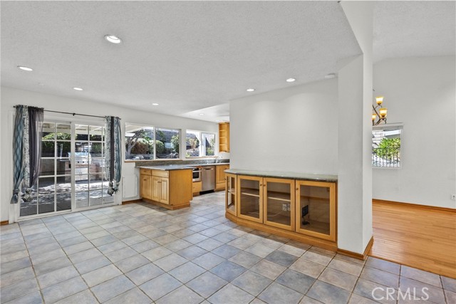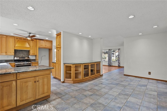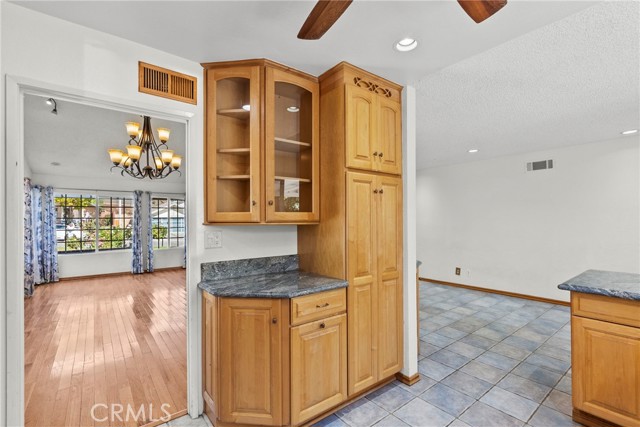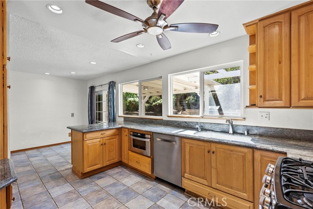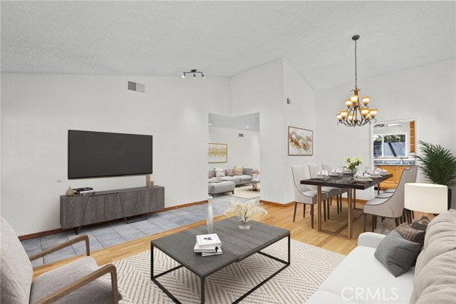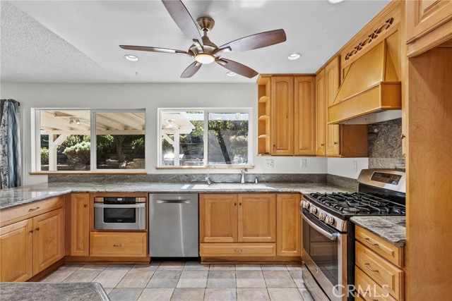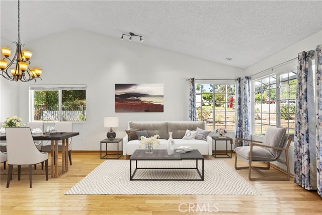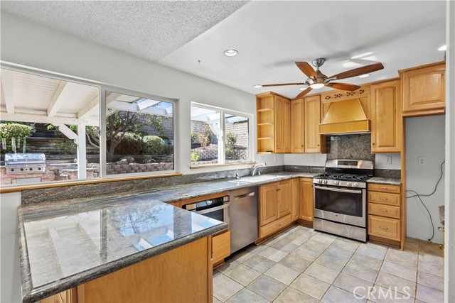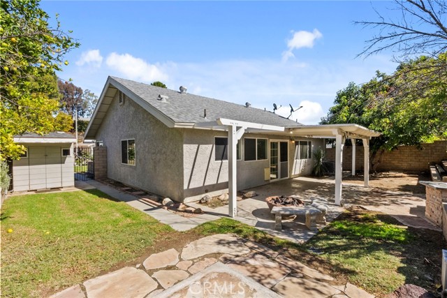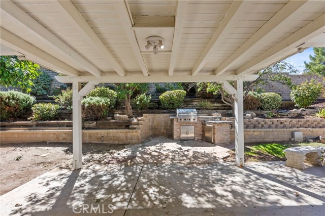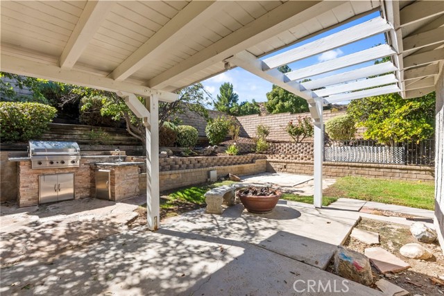 Charming Single-Story Valencia Home on a Beautiful Corner Lot. Welcome to this beautifully upgraded single-story home, nestled in a quiet, well-established Valencia neighborhood. Situated on a well-landscaped corner lot, this residence offers comfort, style, and exceptional outdoor living. Step inside to discover a thoughtfully designed floor plan that's perfect for entertaining. The remodeled kitchen is a true showstopper, featuring high-end Thomasville soft-close cabinetry, granite countertops, stainless steel appliances, and an abundance of counter space—all opening seamlessly to the main living areas. Enjoy the spacious living and dining room with vaulted ceilings, rich hardwood floors, and plenty of natural light—ideal for both everyday living and hosting family gatherings. Step outside to your private backyard oasis, complete with a covered patio, built-in BBQ, fire pit, and a terraced hillside adorned with mature, high-producing avocado and fruit trees. Retreat to the remodeled primary suite with a luxurious spa tub in the upgraded bath. This home also features numerous upgrades, including copper plumbing, dual-pane windows, and a newer HVAC system, roof, water heater, and main service panel. Additional highlights include a stand-up attic above the garage offering valuable storage space. Don’t miss this rare opportunity to own a move-in-ready gem in one of Valencia’s most desirable neighborhoods. Some photos have been virtually staged.