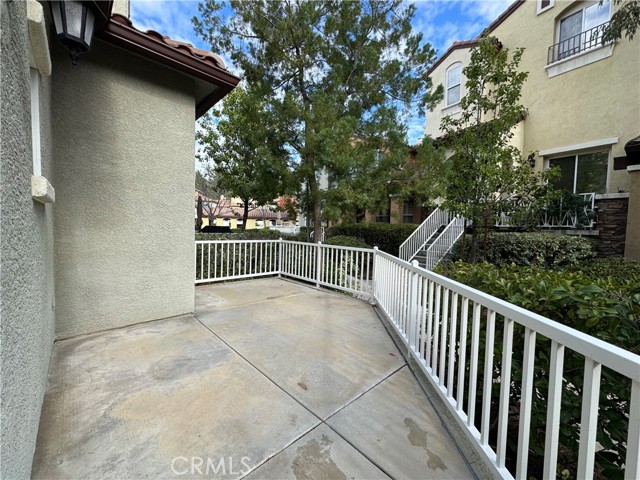 Welcome to this inviting corner-unit townhome featuring 2 bedrooms and 2.5 bathrooms, perfectly situated in the highly desirable Village Walk community of Valencia Northpark. A scenic walkway shaded by mature trees and lush landscaping leads you to the charming front entry. Inside, the spacious open floor plan is filled with natural light and offers a comfortable living room with a cozy fireplace, a dining area, and a well-appointed kitchen with ample cabinetry and counter space. The main level also includes a powder room, a convenient laundry room, and direct access to the attached 2-car garage. Upstairs, the primary suite boasts a generous walk-in closet, dual sinks, and a separate shower and tub. A secondary bedroom and full bathroom with a shower-tub combo complete the second floor. Step outside to your private wraparound patio, an ideal space for BBQs, entertaining, or simply enjoying the tranquil surroundings. Residents of Village Walk enjoy access to a sparkling community pool and spa, while the central location provides easy access to nearby parks, paseos, top-rated schools, shopping, and dining. Best of all, there is no Mello Roos!