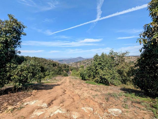 This expansive 18+ acre property offers a prime building site with breathtaking panoramic mountain views. It features a professionally managed avocado grove with a mix of mature, producing Haas and Fuerte trees, along with recently planted ones, ensuring both immediate and future yields. The property has a 3-bedroom septic layout on file, a 2-inch water meter already installed, and paved road access with power nearby. There is no HOA, allowing for more flexibility, and manufactured homes are permitted in the area. The seller is also willing to offer financing. Conveniently located near Highway 76 and in close proximity to I-15, this property provides easy access to surrounding areas while still offering a private and serene setting. It is an excellent opportunity for those looking to build a custom home, invest in agriculture, or enjoy rural living with modern conveniences nearby