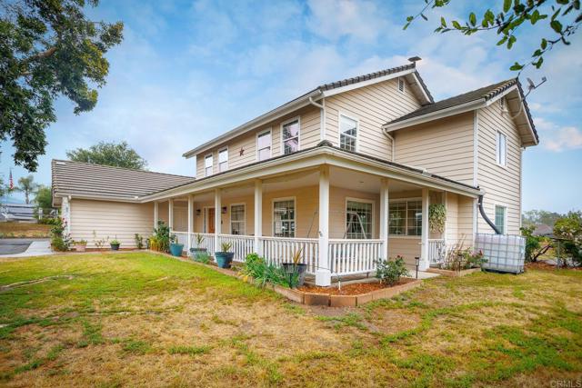 Discover the charm of cozy country living at 15519 Villa Sierra Road, nestled in a peaceful cul-de-sac in Valley Center. This 4-bedroom, 3-bath home offers over 3,100 sq ft of warm, inviting living space on 2 fully usable acres. From the moment you enter the gated drive, you’ll feel welcomed by the wraparound porch, mature landscaping, and serene setting with 360* views. Inside, you’ll find a spacious layout with a formal living and dining room, a large family room with vaulted ceilings and a wood-burning fireplace, along with an updated kitchen with large, walk-in pantry—perfect for storing your favorite recipes and homegrown goods. Downstairs features a full bedroom and bath, while upstairs includes a generous primary suite (14' x 18') with soaking tub, walk-in shower, and dual sinks, plus two additional bedrooms (12†x 14') with a shared, oversized bath (10' x 15') also with dual sinks. Enjoy reliable AT&T Fiber high-speed internet, a central laundry room with a laundry chute from upstairs, and bonus storage throughout. Step outside to your very own Secret Garden with seasonal flowers, shaded seating, and an orchard with over 80 fruit and nut trees along with berry bushes and grape vines. The property has endless potential and is fully fenced and cross-fenced—ideal for animals or future additions like a barn, workshop, ADU, or horse setup. A true retreat for those seeking space, nature, and simple country comfort."