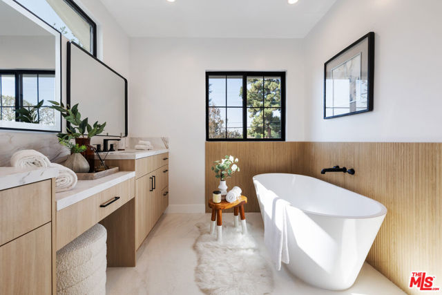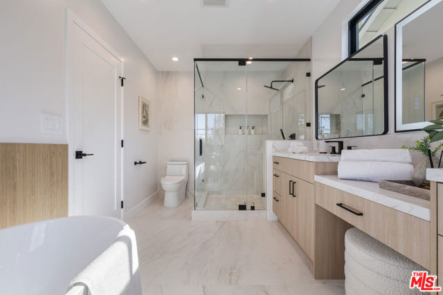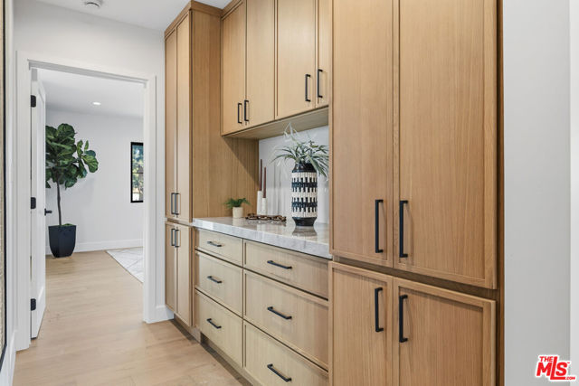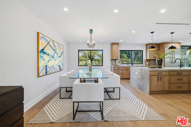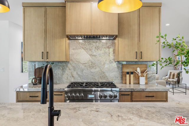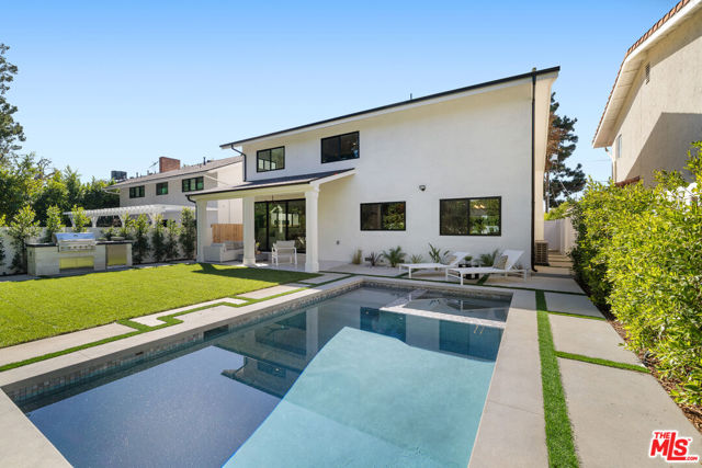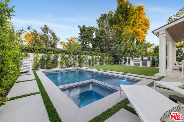 Experience this spectacular, completely reimagined pool home in the coveted Magnolia Estates pocket of Valley Village. Thoughtfully renovated from top to bottom with updated plumbing, electrical, roof, HVAC, windows, and doors, this home blends the character of its original design with a timeless, modern aesthetic. Inside, the open-concept floor plan is ideal for today's lifestyle. The elegant entry leads to a formal living room finished in Italian plaster, a spacious dining area, and a chef's kitchen featuring dual sinks, Thermador appliances, and a stunning Taj Mahal stone island the perfect centerpiece for cooking and gathering. The family room opens seamlessly through an oversized sliding glass door to the backyard oasis with a covered patio, pool, spa, and built-in BBQ area, creating the ultimate indoor-outdoor living experience that defines Southern California living. Downstairs also includes a versatile en-suite bedroom or home office, a spacious laundry/mudroom, and abundant handcrafted white oak cabinetry that adds both warmth and functionality. The finished epoxy-floor garage offers flexible use or bonus space. Upstairs, you'll find four generous bedrooms and three bathrooms, including two luxurious en-suites with fully built-out walk-in closets, thoughtfully designed for maximum organization and everyday ease. The gated front yard provides a generous grassy area and an oversized drivewaylarge enough for additional parking or a possible half-court setup. Located on one of Valley Village's most desirable streets, this property is within very close proximity to restaurants, houses of worship, and neighborhood parks, and just minutes from Studio City, Sherman Oaks, and major commuter routes including the 101 and 170 freeways. With modern upgrades, quality craftsmanship, and a prime Valley Village location, this home offers the rare blend of luxury, comfort, and convenience that today's buyers are searching for.