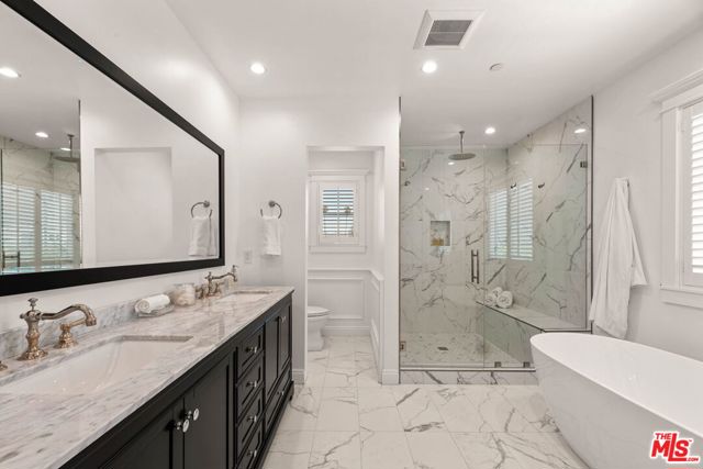 Welcome to 5235 Sylmar Avenue, a masterfully designed Cape Cod style residence that perfectly blends timeless elegance with modern luxury. Built in 2018, this stunning home spans over 3,375 square feet of living space and offers 5 bedrooms, 5 bathrooms, and an inviting layout that was thoughtfully crafted for both everyday comfort and exceptional entertaining. As you enter through the charming front porch, you're greeted by soaring, coffered ceilings, wainscoting throughout, abundant natural light, and wide-plank hardwood floors that flow seamlessly throughout. The open-concept floor plan creates an effortless sense of space and connectivity, ideal for today's lifestyle. A formal living room with fireplace and an elegant dining room set the stage for intimate gatherings, while the expansive family room opens directly to the backyard through large sliding glass doors, creating the perfect indoor-outdoor California living experience. At the heart of the home is the chef's kitchen, featuring custom cabinetry, quartz countertops, a spacious center island with bar seating, and high-end stainless steel appliances. This kitchen is designed to inspire, whether you're preparing a casual meal or hosting a dinner party. A walk-in pantry and generous storage further enhance its functionality.Upstairs, the luxurious primary suite serves as a true retreat, complete with vaulted ceilings, a spa-like bathroom with dual vanities, an oversized glass shower, soaking tub, and a walk-in closet designed for organization and style. Four additional en-suite bedrooms provide ample space and privacy for family and guests, with thoughtfully appointed bathrooms and designer finishes. A flexible loft area and upstairs laundry add convenience and versatility.The backyard is a private oasis made for entertaining and relaxation. Enjoy a sparkling pool and spa, a built-in barbecue, and a covered patio surrounded by lush landscaping the perfect setting for summer gatherings, weekend lounging, or cozy evenings under the stars.Additional highlights include smart-home technology, custom lighting, designer fixtures, and a two-car garage with direct access. Every detail has been carefully considered, from the elegant curb appeal to the thoughtful interior design, making this property truly move-in ready.Ideally located on a quiet, tree-lined street in Sherman Oaks, this home offers the perfect balance of tranquility and convenience. Just minutes away from Ventura Boulevard's vibrant dining, shopping, and entertainment options, with easy access to major freeways and canyon routes. This exquisite property embodies the very best of Southern California living timeless style, modern luxury, and an unbeatable location. Don't miss the opportunity to make this exceptional residence your next home.
