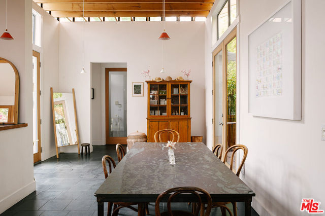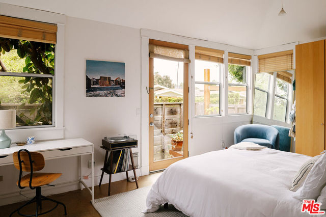 Set back on a quiet corner lot in one of the most desirable pockets of Venice, two distinct homes stand side by side, each with its own character, charm, and each completely private. The first is a 1,309 SF 2 BR + 2 BA home that perfectly captures the effortless cool of Venice, where architectural design and coastal charm converge. As soon as you step inside, the soaring vaulted ceilings with clerestory windows invite the sky in, and subtly infuse the space with natural light. The airy ambiance is matched by warm materials throughout: light oak as well as cork flooring, whitewashed walls, and slate tiled countertops. The open floor plan effortlessly connects the living room, cozy reading or TV nook, dining area, and kitchen anchored by a beautifully curved counter creating a seamless flow ideal for both quiet evenings and effortless entertaining. 8 foot glass doors lead you to outdoor decks and patio areas, blurring the lines between indoor and outdoor living. Each of the two spacious bedrooms is its own retreat: the ensuite offers access to a private outdoor area, while the second opens out to its own deck. Every space in the home feels both expansive and intimate, and its overall thoughtful design emphasizes the connection to both the outdoors and Venice's laid-back, artistic style. The second home, a 432-square-foot Traditional, exudes warmth as soon as you walk through the gate into a charming enclosed front yard. Inside, a cozy yet open living and dining area flows into the kitchen, and the single bedroom, basking in soft light, offers comfort and calm. The 2 BR home is vacant with a recent market rent of $6,800, while the 1 BR is tenant occupied at $3,500 per month, making this not only a unique living opportunity, but a smart investment as well. Two homes, one lot, endless possibilities: live in one, rent the other; share with family; or enjoy as a peaceful, income-producing Venice mini-compound.