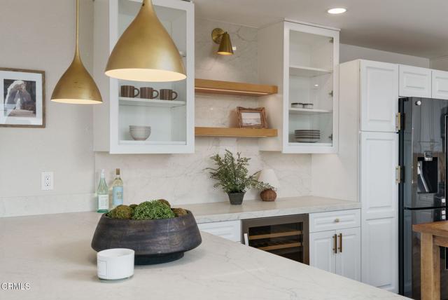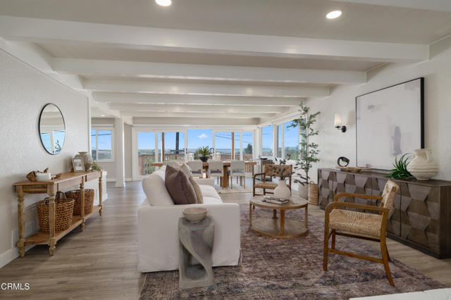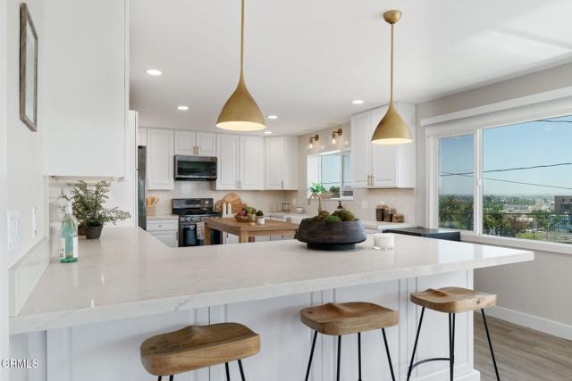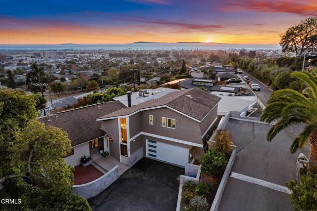 3124 Grove Street delivers sweeping views of the ocean and cityscape--stunning from sunrise to sunset. This thoughtfully updated home embraces a modern, open-concept layout with a flexible, multi-level floor plan designed for both daily living and effortless entertaining. The sleek kitchen showcases refined finishes, a striking stone backsplash, and abundant counter space that opens fluidly into the dining and living areas--each space framed by mesmerizing city lights.Step outside to discover a reimagined backyard retreat: enjoy the fire pit, cook al fresco in the built-in outdoor kitchen, unwind in the private sauna with an outdoor shower--all surrounded by nature and views. The secluded primary suite occupies its own level, with vaulted ceilings, scenic outlooks, a spa-like ensuite, and generous closet and vanity space.Additional upgrades include owned solar with a Tesla Powerwall, Tesla charger, and water softener system--bringing high-efficiency living to this serene coastal escape. Just moments from downtown Ventura, beaches, hiking, and top schools, this is more than a home--it's a hillside sanctuary.