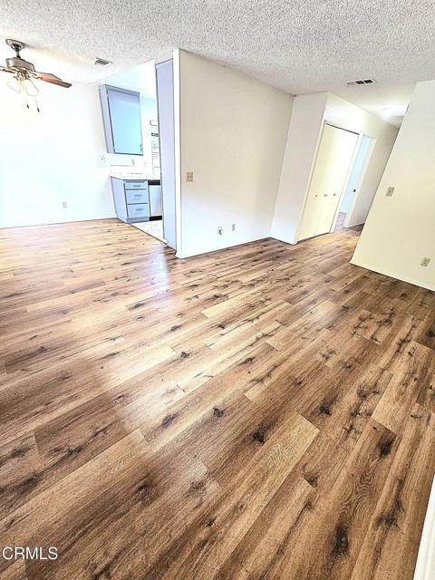 ULTIMATE SINGLE-LEVEL LIVING! Original Owner Here - This is Priced Right! -A Highly desirable end-unit Parkside home that truly checks every box.Enjoy the ease of all-on-one-level living complemented by thoughtful, modern upgrades. The interior features newer double-pane windows and gorgeous wood-like laminate flooring throughout.The refreshed kitchen shines with a modern gas range, built-in vent microwave, brand new dishwasher, and custom touches including a pull-down faucet, contemporary hardware, and a sun-drenched garden window overlooking the sink. A spacious dining area flows via a sliding glass door to your generously sized, private deck, a serene outdoor retreat nestled among mature trees--perfect for entertaining or unwinding.The spacious floor plan offers two large bedrooms and two beautifully updated bathrooms. The primary suite is a true retreat, boasting a large walk-in closet and a convenient step-in shower. Both bathrooms have been tastefully refreshed with new flooring, modern lighting, and updated medicine cabinets.A rarely found convenience is the dedicated in-unit laundry room, designed for full-size, side-by-side machines. Additional highlights include the essential two-car garage with storage.The Parkside community enhances your lifestyle with two sparkling pools and spas, outdoor showers, gas BBQ stations, and access to excellent walking and bike paths. Perfectly positioned, massive guest parking, located near a convenient linear park, shopping, dining, and the Ventura County Government Center. This move-in-ready home offers the ideal blend of comfort, location, and coastal charm!