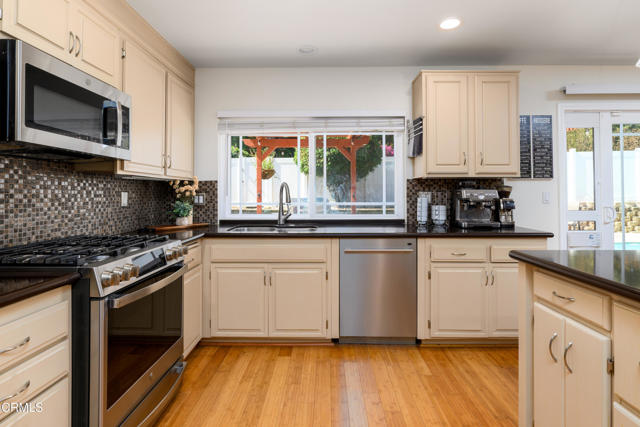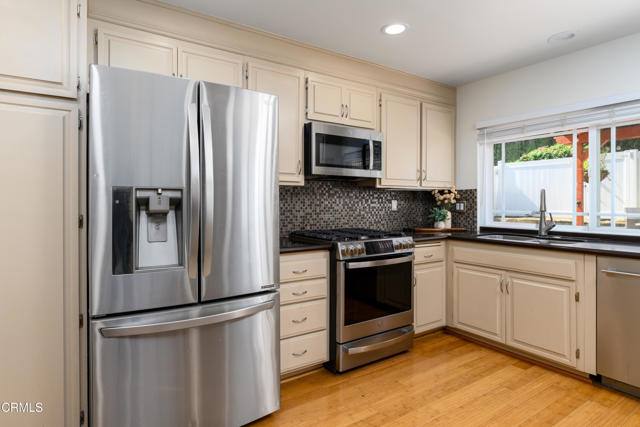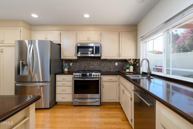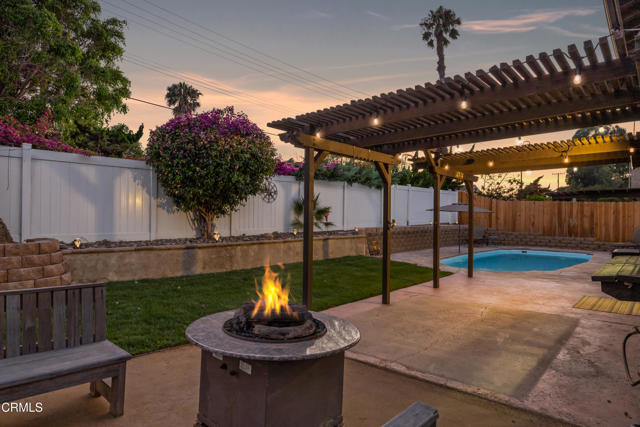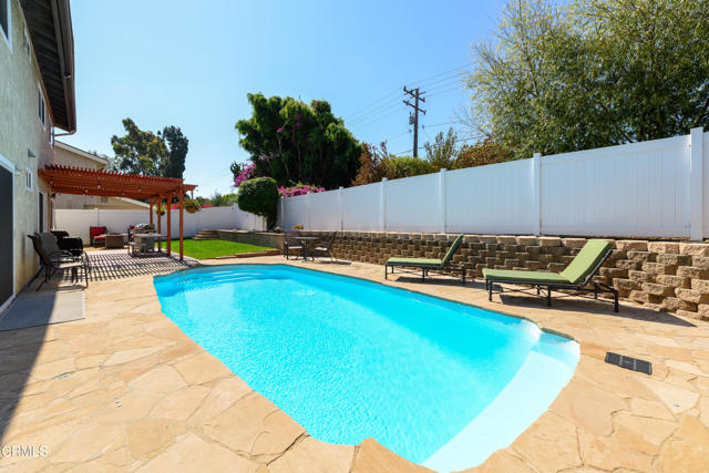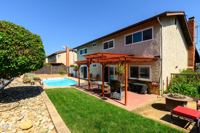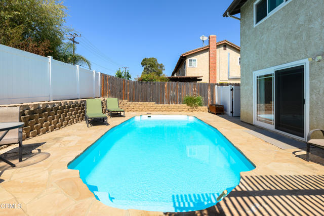 Welcome to 919 Greensboro Road, a move-in ready 4-bedroom, 2-bathroom pool home nestled in Ventura's desirable East End. This 1,867 sq. ft. residence offers a thoughtful layout with the primary suite conveniently located on the main level and three additional bedrooms upstairs--providing both privacy and flexibility for the whole household.Inside, you'll find dual-pane windows, vaulted ceilings, and a spacious living room with a cozy fireplace. The updated kitchen is a true highlight, featuring stainless steel appliances, stone countertops, an island, and plenty of space for gathering.Step outside to your private backyard retreat, complete with a pergola-covered patio, sparkling swimming pool, lush lawn, hardscaping, and raised planter boxes perfect for gardening enthusiasts. Oversized RV parking on the north side adds extra convenience.Backed by a serene community walking path and located just down the street from a neighborhood park, this home combines comfort with lifestyle. All this, just 10 minutes from Ventura's beaches and downtown, and only 5 minutes to the CA-126 for easy commuting.Key Features: -Pool-RV PARKING/oversized storage yard.-Garge epoxied with abundant storage-Downstairs primary bath.-Interior Laundry
