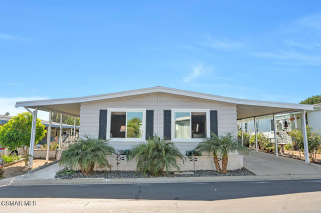 Welcome to Poinsettia Gardens, Ventura -- where comfort, convenience and community come together! Discover this delightful 2-bedroom, 2-bathroom, 1,464 sq ft manufactured home on OWNED land -- a fantastic find in this desirable 55+ gated community. Charming curb appeal greets you with a beautiful tile walkway leading to the front door. Inside, you'll find an inviting living room with oversized windows that fill the space with natural light. Enjoy a blend of wood-like flooring and plush carpet throughout. The generous kitchen flows seamlessly into the dining area, while the sunroom offers the perfect flexible space for an office, gym or reading nook -- the choice is yours. The spacious primary bedroom boasts an ensuite bath with dual vanities and the secondary bedroom features ample closet space and easy access to the guest bathroom. Additional highlights include indoor laundry hookups, an attached 1-car garage plus carport as well as a low-maintenance backyard with a relaxing sitting area -- ideal for soaking up the lovely California sunshine. Residents of Poinsettia Gardens enjoy amazing amenities including a clubhouse, enclosed pool & spa, game room, fruit trees and RV parking. All this, just minutes from the 126 Freeway, shopping, dining and everything Ventura has to offer. Welcome home!