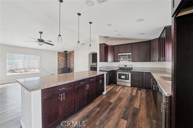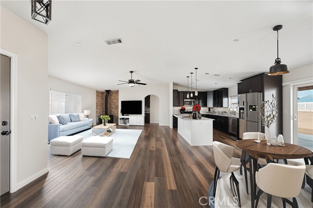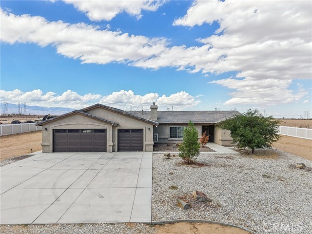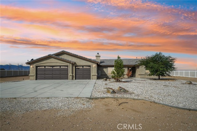 Your Modern Country Retreat in Victorville. Discover the perfect blend of space, style, and comfort at 11436 Amethyst Rd, a beautifully designed single-story home built in 2020. This property offers room to breathe with 1.13 acres of land, giving you the freedom to create your ideal outdoor lifestyle, whether that’s gardening, building a pool, adding RV parking, parking your semi truck and trailer or simply enjoying wide-open views. Step inside and feel right at home. The open-concept living area is filled with natural light and anchored by a cozy pellet stove fireplace. The gourmet kitchen features granite counters, a generous center island, and stainless steel appliances, ideal for meal prep or gathering with family and friends. The private primary suite is a true retreat, offering a spacious walk-in closet and a spa-inspired bath with dual sinks, a soaking tub, and a separate shower. Two additional bedrooms provide flexibility for family, guests, or a dedicated home office. Outdoors, the new vinyl fencing creates a sense of privacy and security, while the expansive acreage invites endless possibilities for entertaining, recreation, or future additions. The three-car garage ensures plenty of space for vehicles, toys, and storage. Located just minutes from shopping, dining, and the 15 Freeway, this home delivers the best of both worlds, peaceful country living with convenient city access.