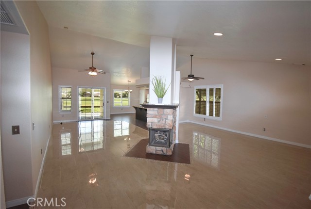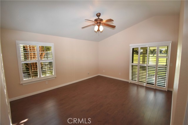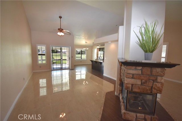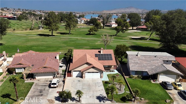 This beautiful 3 car garage home is nestled in Spring Valley Lake on the golf course. This home offers 3bd, 2ba with 1890sqft of living space. The inside has been freshly painted from top to bottom, including bathroom and kitchen cabinets. Beautiful White Shutters are throughout the home. It's a blank canvas and ready for you to add your personal touch. As you walk in the front door, you see the open and spacious Living/formal dining area with a fireplace in the center, to separate and give it a cozy feel all year long. The kitchen can be accessed from either the living or dining area and offers an open feel. Whether you are Watching your favorite shows, entertaining family and friends, preparing a delicious meal in your kitchen or just sitting at your table enjoying a cup of coffee, you will have picturesque views of the beautifully scenic golf course. As you head down the hall you will find access to the 3 car garage through the spacious in door laundry room. Continuing down the hall is the Guest Bathroom and the 3 bedrooms with the spacious primary bedroom at the end. The primary bedroom offer's the scenic view of the golf course along with access to the Back porch and a walk-in closet with built in storage. The Primary bathroom has a custom Shower, with a raised curb to easily get in and out. This house has Solar Panels and is fully landscaped. Come see this beautiful home!