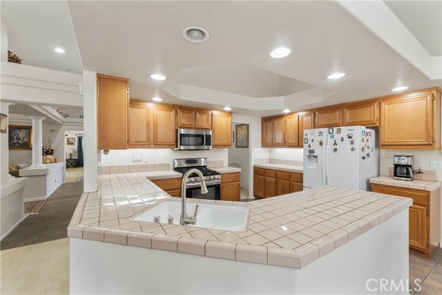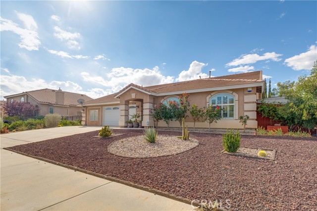 Stop the car! This home is a must see. Located in Victorville is a spacious 4-bedroom, 2-bathroom, 3 car garage home situated on a corner lot. As you drive up, you can't help but notice the low maintenance landscaping and the pride of ownership that is on display. While walking up to this home you are greeted by a lovely front porch perfect for a morning cup of coffee. Upon entering, you have your spacious dining room to your left which flows into your large formal living room. The tall ceiling height and accent columns add to the grandeur of this home. Proceed to your left and you will enter your spacious family room with a double-sided fireplace perfect for those cozy nights. Your large kitchen with plenty of cabinet space and a dining area overlook your family room which is perfect for entertaining. Walk to the west side of the home and you arrive at your indoor laundry room. Continue and you will enter the large primary bedroom with an ensuite bathroom and spacious walk-in closet. Down the hallway is your guest restroom and three large bedrooms with ceiling fans. The backyard is ready for you to enjoy with a covered patio, low maintenance landscaping and small fruit trees. This home won't last long. Schedule your showing today.