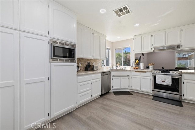 Welcome to this beautifully updated 3-bedroom, 2-bath ranch-style home that perfectly blends comfort, style, and modern convenience. Step inside to discover remodeled flooring throughout and upgraded windows that fill the home with natural light while improving energy efficiency. The spacious living area flows seamlessly into the kitchen and dining space, highlighted by a beautiful double-sided fireplace that connects the living and dining rooms—creating warmth and ambiance for gatherings or quiet evenings at home. New ceiling fans throughout the home provide added comfort and energy efficiency, while the primary suite features a large walk-in closet, offering plenty of storage and a private retreat within the home. Outside, enjoy low-maintenance turf landscaping in both the front and backyard, creating a lush, green look year-round. The back patio has been completely redone, providing the perfect spot for outdoor entertaining. The refreshed front yard adds the finishing touch to this move-in-ready gem. Conveniently located near schools, parks, and shopping, this home offers the ideal balance of modern updates and timeless charm. Don’t miss your chance to make this stunning property yours!