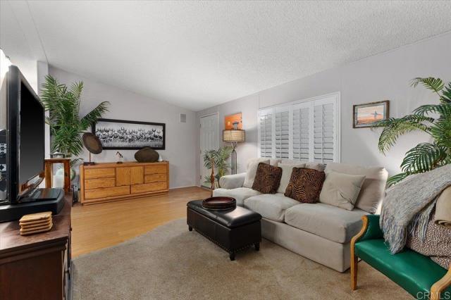 Charming 3-Bedroom Home located in a 55+ Resident-Owned Community! Welcome to Corona Del Vista, a well-maintained, resident-owned co-op share 55+ community where you own your land—no space rent or monthly land lease! This beautifully upgraded home offers a desirable split-bedroom floor plan, providing privacy between the Primary Suite and two Guest Bedrooms. This lovely home shows pride of ownership and boasts many recent upgrades and special features including a *new water heater *newer A/C & ductwork, *upgraded matching granite counter tops in the Kitchen and Bathrooms, *newer black Kitchen sink and faucet for a modern touch, *double convection oven, *many upgrades in both bathrooms including new elongated toilets, *vaulted ceilings, *4 ceiling fans, plantation shutters in the Living and Dining room, built-in speakers in the Living room, *an enclosed California Room that offers additional usable space not listed in the square footage that is perfect for hobbies, storage, or recreation. Some furniture and art decor can be included and / or purchased for an additional price. Enjoy a large private yard featuring a patio and two storage sheds—one with electricity & a workbench. Plus, pick fresh fruit from your own three orange trees, one lemon tree, and an avocado tree! Corona Del Vista allows one pet under 40 lbs per household. The second resident can be age 45+. Low HOA fee of only $219.50/mo includes Trash & Dish Network Cable TV. Amenities include a clubhouse, pool, spa, library, shuffle board, BBQs, fenced dog park, RV parking (for an additional fee and per availability), and so much more! Located near shopping, restaurants, public transportation and just a short drive to the beach!