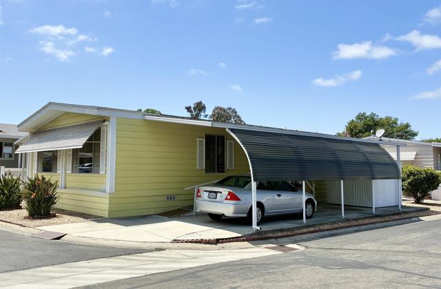 Corner lot in an active, 55+ park located close to shopping, Costco, TriCity Medical, highways 78 & 5, beaches, & more! This home is also conveniently located across from the community amenities including the pool, spa, clubhouse / rec room, guest parking and many social gatherings! NO property taxes; This home is still on HCD registration and is therefore NOT on the property tax rolls! This spacious home offers separate Living and Family rooms, for plenty of space to entertain and relax, a large circular Kitchen with dining bar, formal Dining area, indoor laundry room, and two bedrooms, each with it's own ensuite bathroom. The Primary Bedroom has two closets. The furnace and refrigerator are both newer. The carport has been widened for extra convenience and provides better space to open and close your car doors. The exterior offers an open air covered porch, orange tree, storage shed, and wheelchair ramp! This is a 55+ park w/ amenities and activities. The monthly space rent is $1,032.02 per month.