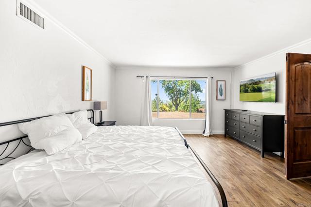 Wake up to breathtaking mountain sunrises, ocean views, and unwind at this hilltop retreat in Vista. This 5-bed, 5-bath, nearly 3,000 sq ft home sits on almost a full acre, offering a rare blend of privacy, space, and panoramic views. Inside, the open, light-filled layout features a versatile floor plan with 3 bedrooms upstairs and 2 bedrooms downstairs, an additional converted garage bedroom and full bathroom, and dining room that can convert to an additional bedroom—perfect for multi-generational living, guest quarters, or a home office. A detached structure provides additional potential for a studio, gym, or creative space. The outdoor areas are just as impressive. Tiered landscaping, mature trees, and multiple patio spaces create the ideal setting for entertaining, gardening, or relaxing in total seclusion. With over 40 leased solar panels, your energy bills can stay low while your lifestyle stays big. Located in a quiet neighborhood with a peaceful countryside feel-yet just minutes from shopping, dining, schools, and the coast-this property offers the best of both worlds. Property highlights include panoramic mountain and ocean views, 5 bedrooms with 2 additional bedrooms on bottom floor / 5 full bathrooms, detached bonus structure, nearly 1 acre of landscaped, tiered outdoor space, fully owned solar system (40+ panels), flexible multi-level layout for guests or extended family, peaceful location minutes from amenities and beaches, and tiered landscaping perfect for an additional ADU or RV Parking. Experience the beauty, privacy, and potential of 326 Sunrise Circle in person—you won’t want to leave. Easy to show.