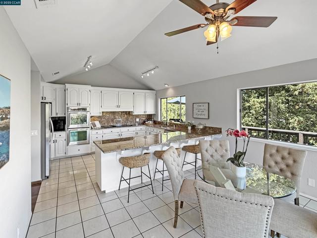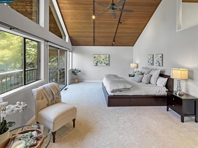 Experience the breathtaking alpine charm just minutes from downtown Walnut Creek and Lafayette. Nestled among mature redwoods in a peaceful secluded setting, this beautifully crafted cedar-shingled sanctuary offers inspiring views of Mt. Diablo and Acalanes Ridge. The main level is designed with effortless flow for both entertaining and everyday living. The light-filled living room boasts soaring ceilings, hardwood floors, large stone fireplace and wall of windows to take in the ever-changing panoramic views. The well-appointed eat-in kitchen has granite counters, stainless steel appliances, breakfast bar and opens to an impressive dining room as well as a large wrap around deck. The palatial primary suite offers vaulted ceilings, abundant natural light large private deck. Downstairs provides a perfect refuge with three large bedrooms, two full bathrooms and a second family room complete with brick fireplace, wet bar and direct access to the backyard garden and hot tub overlooking the hills The landscaped yard includes lemon, apple and plum trees. Owned solar panels minimize electric bill. Centrally located near award-winning schools, open space and nearby trails, shopping, dining, community events, freeway access and more. Truly a rare and remarkable retreat! Special Financing