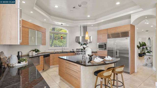 Exceptional value & just minutes from downtown Walnut Creek. This custom built five-bedroom, five-bath estate offers over 5,100 square feet of refined living space, masterfully blending elegance, versatility, and modern comfort. Spanning two levels with soaring ceilings, it provides an ideal setting for entertaining, working from home, or multi-generational living. Thoughtfully rebuilt and expanded with permits approximately 20 years ago, the home features two primary suites—one on each floor—plus a spacious bonus room with stunning views. Four wraparound balconies frame sweeping vistas of Mount Diablo, creating a seamless indoor-outdoor living experience. The chef’s kitchen is a true centerpiece, appointed with sleek Italian cabinetry, a six-burner range, and Sub-Zero refrigeration. Designed for both comfort and efficiency, the home includes triple-pane Pella windows with integrated blinds and owned solar panels. A two-car garage plus three additional private parking spaces offer convenience, while low HOA dues include access to a community pool. Ideally situated just minutes from BART, top-rated schools, and major commuter routes, this residence embodies timeless design, quality craftsmanship, and effortless luxury living.