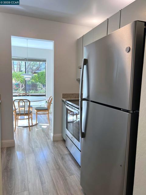 Welcome to affordable resort-style living in the heart of Walnut Creek! This bright move-in ready one bedroom unit in The Keys complex offers the perfect blend of convenience, comfort and wonderful amenities. Step inside to a welcoming living space that opens directly onto a large, semi-private courtyard (shared between 4 units), providing a serene outdoor extension perfect for relaxing or entertaining guests. Recent upgrades include newer laminate floors, granite kitchen counters, stainless steel appliances, updated lighting in the dining area, stylish painted cabinets, 5 inch baseboards and much more! Enjoy three swimming pools (one large resort style main pool heated year-round along with two smaller more private pools), spas, a two-story clubhouse with a gym and fitness center, tennis courts, basketball, racquetball, putting green, saunas, billiard room, BBQ areas and gated Iron Horse Trail access. HOA dues include all amenities, water and trash removal. Whether you're a first-time homebuyer, looking to downsize, or seeking an incredible investment property, this condo offers unbeatable value in a phenomenal community.