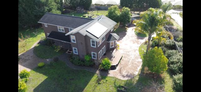 Residential and Agricultural property. The Agricultural area can be use for organic farming or raising livestock. The Residential area can be used to entertain friends and family in your expansive back yard under the sun and stars. Gated Entry for extra privacy, the house has a great open space in the bottom floor for indoor entertaining and a full Bathroom and Bedroom. Plus a 300 Sq. Ft. Sunroom next to the formal dining room for Holiday dining with the whole Family. The additional permitted 888 Sq. Ft. exercise Room above the 3-Car Garage. Can possibly be converted to an ADU, buyers are advice to contact Santa Cruz County planning dept, Per SCCO, The CA (Commercial Agriculture) district allows 1 detached single-family dwelling, an attached conversion JADU and 1 ADU subject to a level 4 discretionary permit and building permit.for more info on ADU requirements. The Flat 5.0+- Acre Farmland in back of the house, was previously leased to a local Organic Tomato farmer for many years. Custom Built-in 2002, 3 Bed, 3 Bath, 3 Fireplaces, primary Suite with Office/ Den. Den, can possibly be converted to a fourth bedroom. Many Fruit Trees, a Hot Tub and several raised planters. Best of all it's close to the famous Corralitos Sausage Market, Wineries, Parks, restaurants and much more.