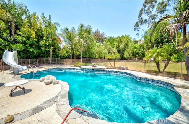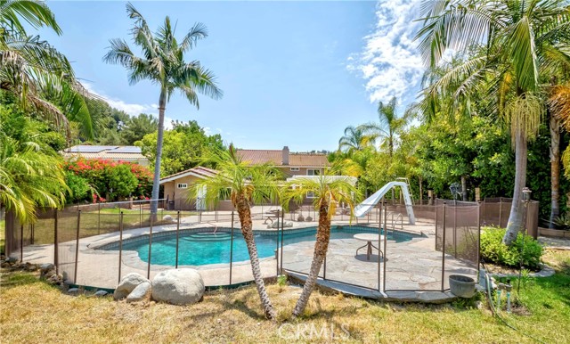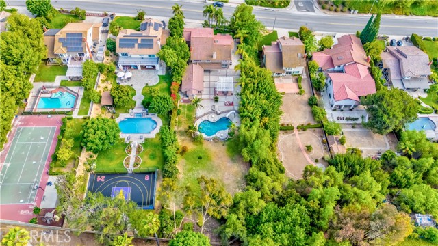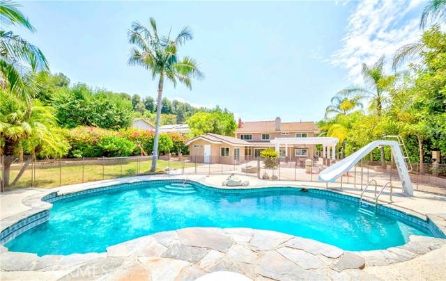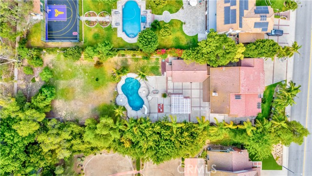 Welcome to this stunning estate located in the prestigious South Hills neighborhood of West Covina — the most desirable area in the city. Nestled on a rare 0.87-acre flat lot, this beautiful home offers 3,605 sq.ft. of interior living space, plus a permitted 640 sq.ft. guest house (ADU) built in 2008. The main house features 4 spacious bedrooms and 3 bathrooms, including a downstairs suite ideal for guests or multi-generational living. The heart of the home is an open-concept kitchen and family room, complete with a dry bar — perfect for entertaining. Upstairs, you’ll find 3 bedrooms, including the luxurious master suite, and a large enclosed entertainment room with a wet bar. The detached ADU offers privacy and convenience, featuring 1 bedroom, 1 full bathroom, a fully equipped kitchen, and washer/dryer hookups — ideal for extended family, guests, or rental income. Enjoy California outdoor living in the spacious backyard oasis with a sparkling pool and spa, fruit trees, and ample flat land with potential for building 2 additional ADU units (buyer to verify with city).This is a rare opportunity to own a grand estate in a prime location with exceptional expansion potential!