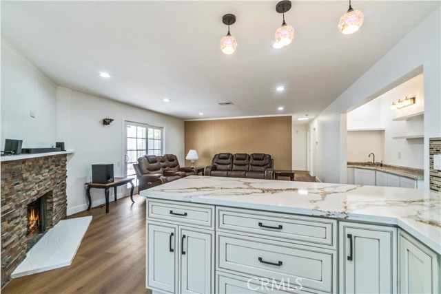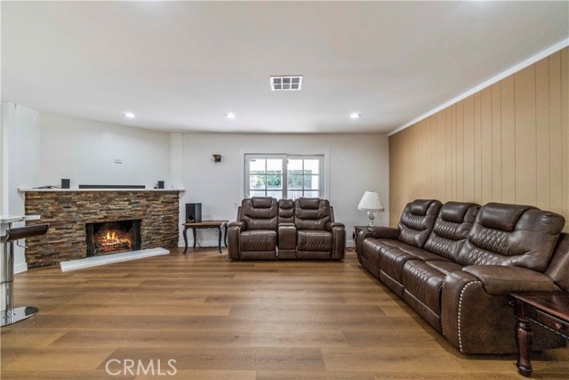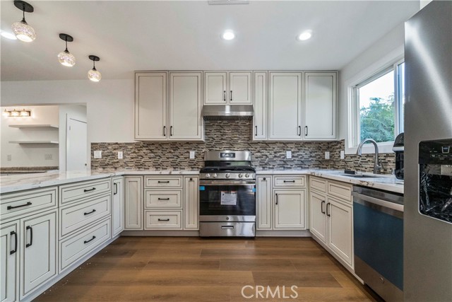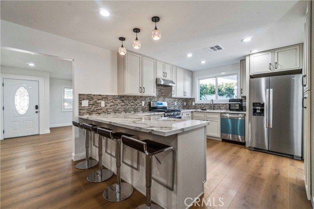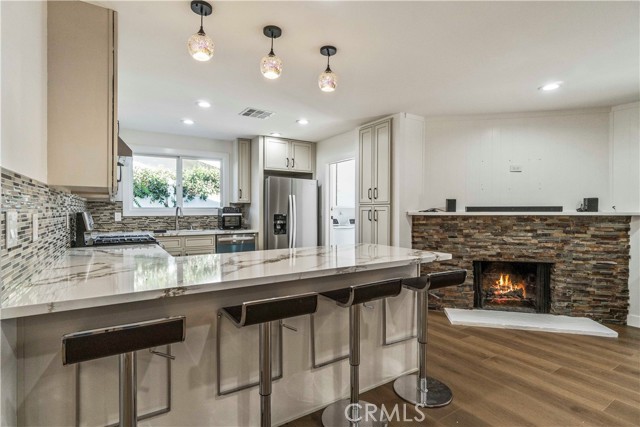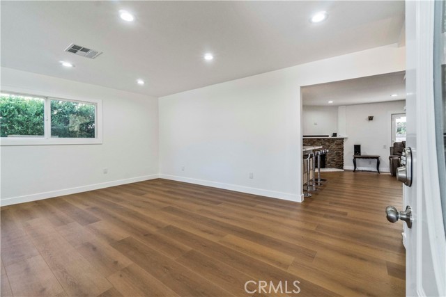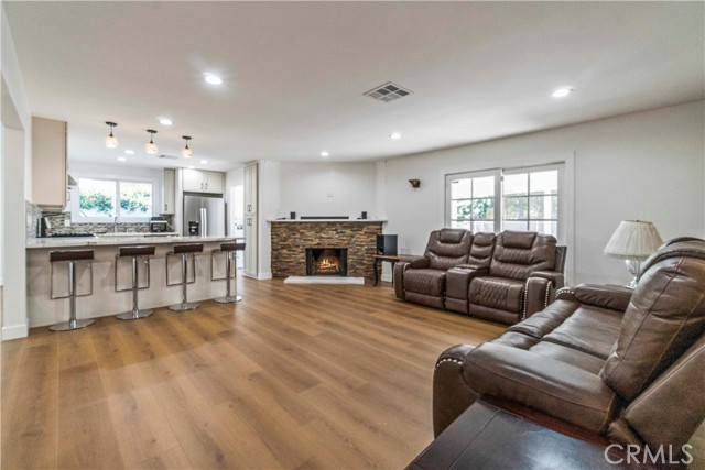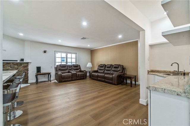 Welcome to the heart of West Hills! This tranquil and safe neighborhood is adorned with tree-lined streets and offers beautiful views of nature, the neighborhood, and city lights. This spacious home features an open floor plan with over 2,000 sqft, including a large living room and family room with new engineered hardwood floors and a wet bar. The custom kitchen boasts quartz countertops, custom cabinets, and brand-new stainless-steel appliances, including a range oven, dishwasher, and refrigerator. Newly installed highly efficient solar panels, Energy-saving LED recessed ceiling lights, tankless water heater, and newer energy-efficient windows and sliding doors. The family room features a cozy gas/wood-burning fireplace and leads to four spacious bedrooms and three beautifully remodeled bathrooms, providing ample space for luxurious living. The open layout connects the living room, family room, and kitchen, creating an inviting atmosphere for relaxation and entertainment, complemented by an inside laundry room. The garage has been converted into an ADU, serving as a potential fourth bedroom with its own attached bath, or as a studio or guest unit with a separate entrance perfect for extended family or rental income. The expansive backyard offers a serene retreat amidst nature, and a private covered patio is ideal for barbecuing, entertaining, or children's play. There is a recreation room, in the backyard, which is ideal for a your private GYM, game room, study room, additional guest room, for meditation, children’s play room, changing room after swimming, and or just for relaxing etc. With plenty of street parking for guests, this home is conveniently located near grocery stores, shopping centers, fine dining, public transportation, Topanga Village (less than 10 minutes away), the 101 & 118 Freeways, and award-winning schools. Discover the perfect blend of comfort and convenience!