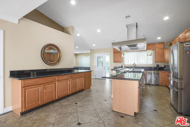 Renovated, spacious 2,235 sf single-story furnished home with amazing Pebble Tec pool with spa and waterslide on large 9,500 sf lot on the end of tranquil cul-de-sac. Features open floor plan with wood floors, 4 bedrooms, 3 bathrooms. 2 of the bedrooms are separate primary suites with their own ensuite bathroom. Home boasts an updated gourmet kitchen with granite countertops, stainless appliances, and a walk-in pantry room. There is also a family room, living room, and dining area. This home has it all: recessed lighting, dual-pane windows, zoned HVAC, copper plumbing/electrical, water treatment, and security systems. Backyard has Trex decking, fruit trees, and new. Near Westfield Topanga Mall.