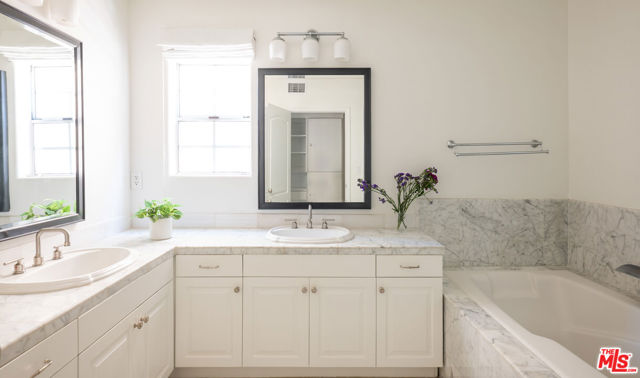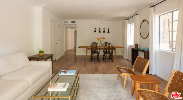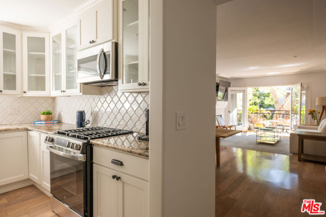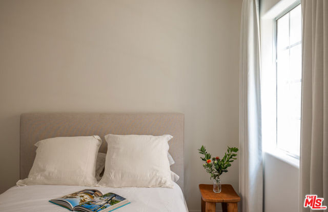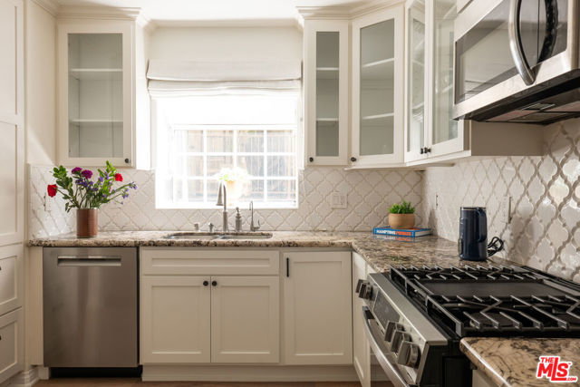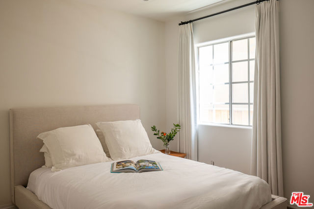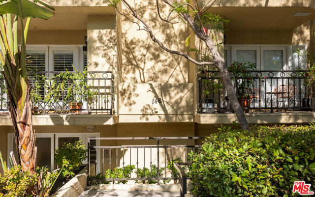 This beautifully maintained 2 bedroom, 2 bathroom condo offers 1,472 square feet of comfortable, private living in a boutique 8 unit building. With no shared walls and a second floor location in an elevator served structure, the unit lives more like a standalone home. Each bedroom is well sized with generous storage space. Primary bathroom features dual sinks, bath tub spa, and freestanding shower. Both bathrooms have white carrara marble countertops, floors, and showers. Features include a private front patio, a dedicated doggy patio with BBQ area, and in unit laundry with full size washer and dryer. A bonus nook is perfect for a home office or Peloton setup. The spacious kitchen offers stainless steel appliances and generous cabinet space. New dishwasher, range, and HVAC system were all installed in 2024. Gas meters replaced in 2023. The HOA covers building, water and sewer, common gas and electricity, trash, landscaping, elevator maintenance, and more - making ownership simple and low maintenance ownership. Ideally located between Beverly Hills and West Hollywood, in one of LA's most desirable and walkable neighborhoods. This home is move in ready and available furnished.