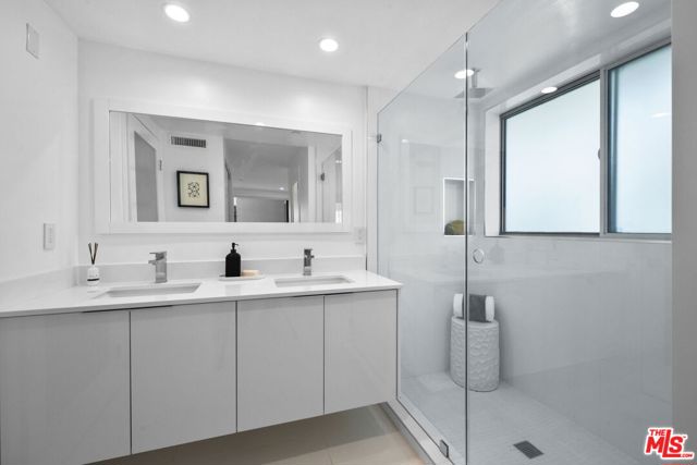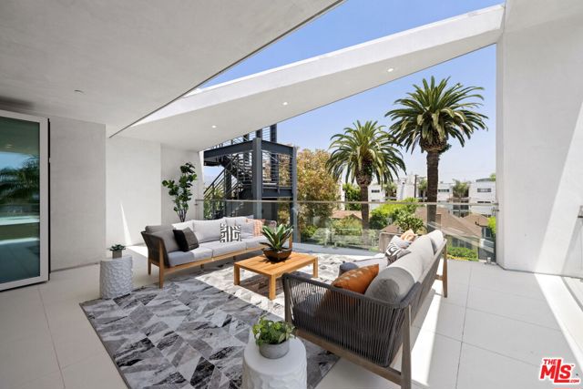 In addition to the 1,691 square feet of interior living space, this residence boasts more than 1,030 square feet of private outdoor terraces! Welcome to THE TITANIUM, Unit 3 - Rhodium, is a stunning three-story penthouse and a truly one-of-a-kind architectural gem perched atop a boutique four-unit building just moments from the iconic Melrose Place. More than just a home, this unique residence is a livable art piece that simply cannot be replicated. The thoughtfully designed outdoor areas include a spacious terrace extending from the living room, a shared terrace connecting both primary suites, and a third terrace conveniently located just off the kitchen, perfect for indoor-outdoor living and entertaining. The residence also boasts exclusive access to a private rooftop retreat, offering additional ample space to entertain while taking in panoramic 360-degree views of Los Angeles, from the hills to the skyline. Inside, the bright and open layout is thoughtfully designed with seamless indoor-outdoor flow, creating an elevated and expansive living experience. The home features two matching primary suites, each with direct access to the terrace previously mentioned, ideal for a private gym, lounge, or flexible outdoor retreat. Additional highlights include two side-by-side parking spaces in a secure garage and direct elevator access for ultimate privacy and convenience. Set in one of LA's most coveted neighborhoods, surrounded by world-class shopping, dining, and design destinations, this rare penthouse stands alone in style, location, and creative spirit. A singular West Hollywood retreat not to be missed.