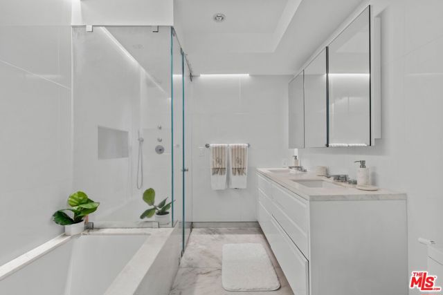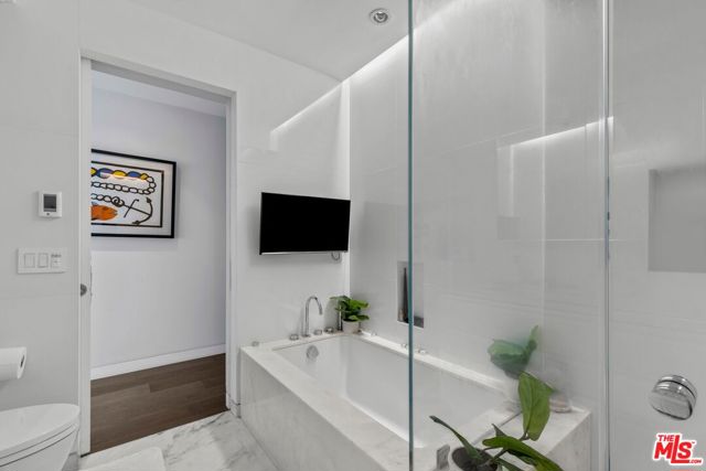 Designer Condo at 838 Doheny. Setting the bar for luxury living in LA. A sophisticated open space, retractable Fleetwood glass doors showcase a wrap around patio for ultimate indoor/outdoor living. An entry leads to open-concept living room, formal dining and chef's kitchen. Custom European cabinets with waterfall countertop, Subzero, Miele, Bosch appliances, creating a perfect layout for entertaining. The living area with surround sound Sonos system, motorized solar shades, Lutton lighting controls, Nest and air filtration system. The two-bed unit features a primary with ensuite bath a dual vanity, soaking tub, glassed shower, heated floors, walk-in closet and extra storage. A guest room and 2nd bath complete. Wide-plank Oak floors throughout, new electrical and plumbing systems, private laundry with pantry area. Building amenities: a roof-top pool with sundecks and dining areas, fire-pits, gym and 360 degree views from city to ocean. A 2nd pool, full time concierge and valet. Cable, internet, HBO, and water included.