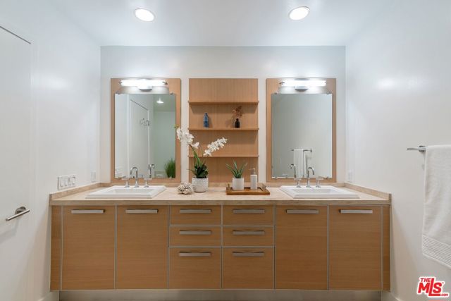 SELLER WILL PAY FIRST YEAR OF HOA DUES. On a quiet street just north of Sunset Boulevard, this bright and spacious 2-bedroom, 2.5-bath condo blends comfort and privacy. Exit the elevator into your dedicated foyer. Set in a modern 15-unit building, the condo features an open-concept living and dining area that flows onto a balcony with city views. The kitchen is fully equipped with stainless steel appliances, including a gas range, double-door refrigerator, and dishwasher. The primary suite includes its own private balcony, a generous walk-in closet, and a large en-suite bathroom with dual sinks, a soaking tub, and a separate shower. The second bedroom, located across the unit for added privacy, also offers an en-suite bath perfect for guests or a home office. Additional highlights include in-unit laundry, side-by-side parking, extra storage in the secured garage, and access to a rooftop deck with panoramic city views.