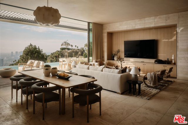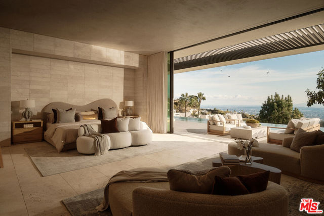 Designed by the internationally acclaimed architectural firm Woods + Dangaran, this extraordinary estate commands unparalleled 280 southern views, spanning from the glittering Los Angeles skyline to the vast expanse of the Pacific Ocean. Crafted with 200 tons of hand-selected Turkish Travertine, the residence is a masterpiece of modern design, where floor-to-ceiling glass panels and White Oak accents invite abundant natural light, creating an atmosphere of warmth and sophistication. At the heart of the home, a state-of-the-art chef's kitchen outfitted with Gaggenau and Sub-Zero appliances, seamlessly integrates with the exquisitely designed formal dining room and living space, both of which open to the 115-foot infinity pool that spans the length of the estate, offering an unparalleled setting for entertainment and relaxation. The primary suite is a private sanctuary, evoking a spa-like retreat with a soaking tub, expansive custom closets, and a secluded atrium, ensuring tranquility and refinement. A striking two-story glass enclosure houses a 35-foot Jacaranda tree, serving as the estate's living centerpiece - a breathtaking fusion of architecture and nature. Designed for unrivaled luxury and wellness, the estate boasts an array of premier amenities, including a private theater, gym, spa, wine cellar, and lounge. Advanced Delos Super V air purification technology ensures an environment of pristine air quality, capturing and reducing ultrafine particles to promote health and well-being. Every element of this estate has been meticulously curated to redefine luxury living, where form, function, and artistry converge to create an unparalleled residential experience. Nightingale is not just a home but a sanctuary of sophistication, serenity, and distinction.