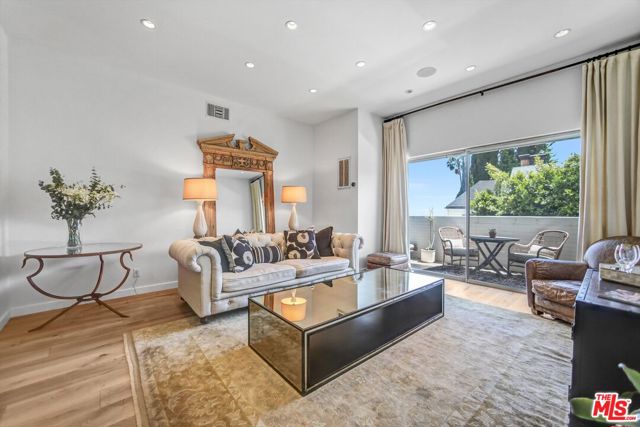 A rare opportunity to own in West Hollywood's most sought-after full-service buildings. Located in the prestigious Doheny West Towers is this stunning, one-bedroom residence. This exceptionally bright and airy south-facing unit features soaring ceilings (over 10 ft), brand new oak flooring throughout, a spacious living room, and a European kitchen with stainless appliances and stone countertops. The bedroom has a built-in closet and direct access to the 180 sqft balcony with city/tree-top views. The bathroom features high ceilings, a spacious shower, and a vanity. The unit is located one level above the main lobby of the secure building, not the ground level. The full-service building recently completed an $ 8 M+ renovation and has a 24-hour concierge/doorman, security, complimentary valet for guests, saltwater pool, gym, sauna, and laundry facility. It is located in the trendy West Hollywood/Beverly Hills area with close access to some of the best restaurants, shops, and hotels.