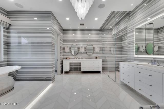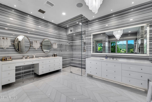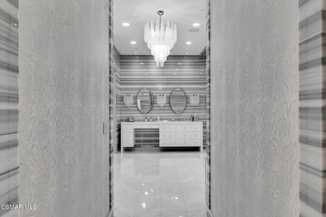 This is it!!!! One of the Most Stylish Homes in Sherwood - A True MasterpieceThis extraordinary residence is one of Sherwood's most elegantly appointed homes and must be seen to be fully appreciated. Exquisite, high-end finishes are found throughout, including Calcutta Manhattan gray marble, Black Diamond quartzite, Titanium quartzite with a leathered finish, Fantasy Blue quartzite, and Zebra Striato Olimpico marble in the primary bath. The gourmet kitchen features Japanese Nano glass surfaces and is complemented by imported Murano glass chandeliers from Italy.Designer elements include wall coverings and drapery fabrics by Christian Lacroix and Kelly Wearstler, elevating every space with curated sophistication.The thoughtful floor plan includes five luxurious en-suite bedrooms, a stunning powder room, a private office, and a state-of-the-art home theater designed and installed by Wilshire Media. An impressive professional bar and entertainment room enhances the home's exceptional appeal.Situated on one of Sherwood's rare, usable one-acre lots (combining two parcels), the property is designed for both privacy and outdoor enjoyment. The resort-style backyard includes a beautifully renovated pool and spa with a full retractable cover, expansive patio overhangs, generous lawn areas, and multiple entertaining spaces. There are two separate large 2 car garages.Backing to 56 acres of open space known as Dickens Patch, this home offers unmatched privacy, breathtaking finishes, and a lifestyle of luxury in a truly stunning setting.