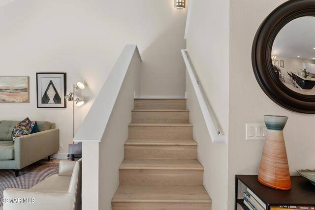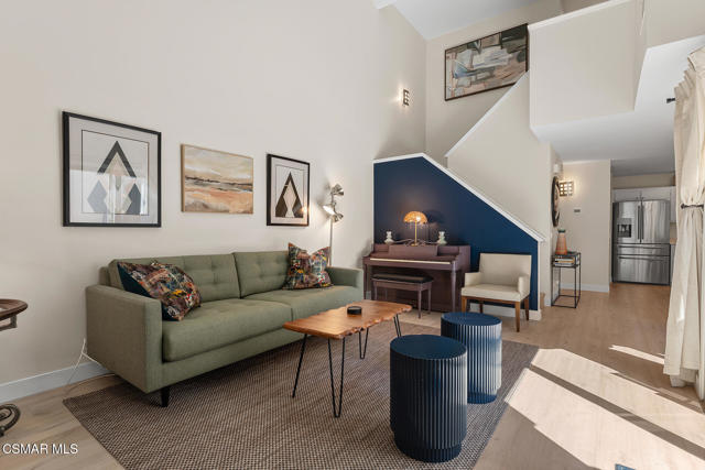 Welcome to this beautifully updated 3-bedroom, 2.5-bath condo, ideally located at the top of the desirable Hidden Canyon community in Westlake Village. This move-in-ready home blends modern upgrades with timeless style and comfort. The living room features soaring vaulted ceilings, a cozy fireplace, and abundant natural light. Custom-built double-pane windows with premium blinds enhance energy efficiency, sound control, and privacy. Freshly painted interiors, wood-like flooring, and recessed lighting create a warm and inviting atmosphere. The kitchen boasts stainless steel appliances, refinished cabinetry, and a brand-new water purification system. Bathrooms have been tastefully updated with new vanities and fixtures. Additional features include central HVAC, a direct-access 2-car garage with built-in cabinetry, laundry hookups, rafter storage, and an upgraded coated floor. Enjoy outdoor living on the oversized private patio, surrounded by lush landscaping. Hidden Canyon offers multiple pools, spas, playgrounds, greenbelts, and scenic walking trails among rolling hills and mature trees. Conveniently located near shops, dining, and award-winning schools, with easy access to Westlake Blvd. and Lindero Canyon, this turnkey residence offers both elegance and practicality in one of Westlake Village's most sought-after communities.