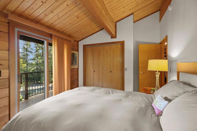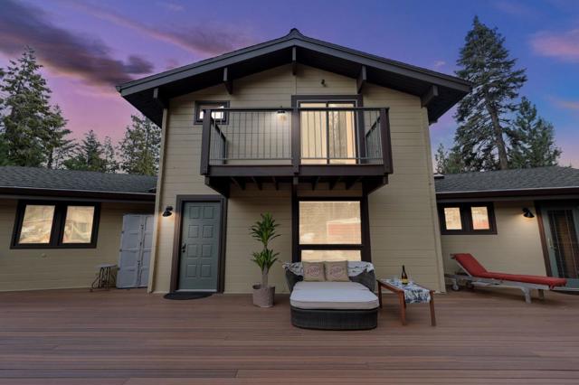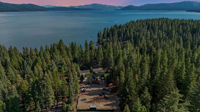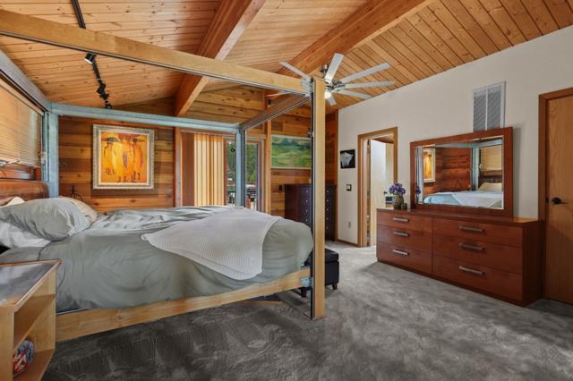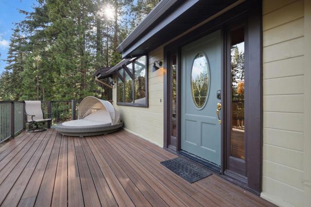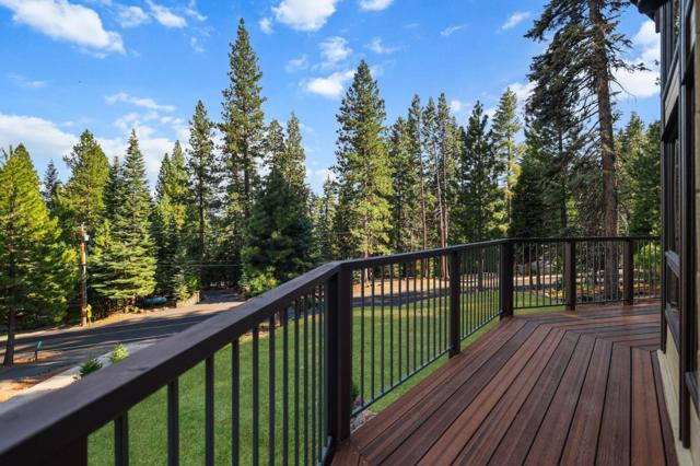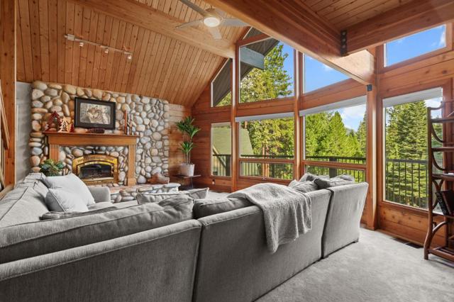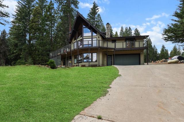 A stunning, entertainer's delight with peek-a-boo views of the lake: 4 bedroom, 3 bath custom Lindal cedar home in Lake Almanor Country Club Estates. A spacious open beam, open concept layout with oak hardwood floors in the main living area. Cozy up to a warm fire in the stone fireplace in the living room with floor-to-ceiling windows. Chef's kitchen features granite countertops, a gas stovetop, and a breakfast bar. The dining area is perfect for hosting large sit-down dinners and under bright atrium windows. On the other side is a family room and laundry/mud room. An expansive,984 sf, composite deck off the kitchen and family room and is level with parking area for convenient unloading of groceries. The 500 sf deck in the front of the house ends with a whimsical spiral staircase to access the outdoor space below. Primary loft suite retreat includes a private balcony deck, 2 bedrooms on the main floor, plus a ground-floor ensuite bedroom with patio access, outdoor shower and a 4-person, barrel sauna for ultimate relaxation. Amenities: separate one-car garage building, a Generac generator with its own dedicated propane tank, and an EV hookup in the 2-car attached garage. Large level lot above house with possibilities - a family compound, add a guest house, workshop - up to you.