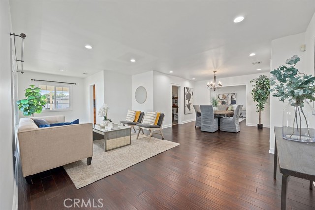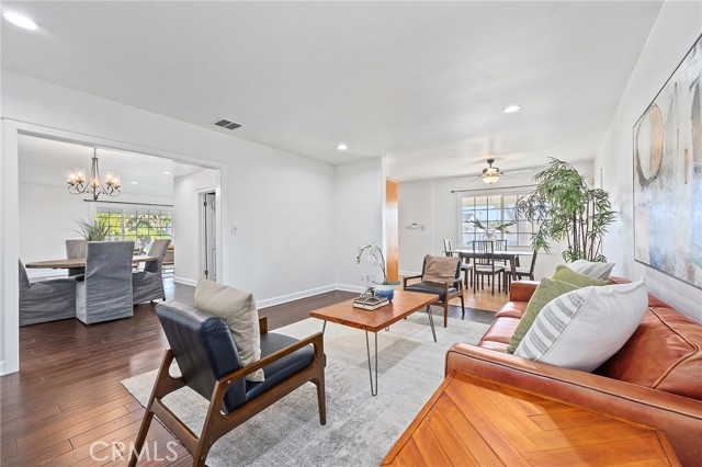 BEAUTIFULLY UPDATED SINGLE-LEVEL HOME ON A SPACIOUS CORNER LOT IN WHITTIER! Welcome to this inviting 4-bedroom, 2-bath home offering 1,993 sq. ft. of comfortable living space on a generous 6,352 sq. ft. lot. Featuring a bright, open layout and thoughtful upgrades throughout, this move-in ready residence combines comfort and modern style. Freshly painted with new carpet, the home includes a kitchen with a brand-new stove and microwave, while the dining area is highlighted by a beautiful chandelier. Enjoy new recessed lighting, a mix of wood, tile, and carpet flooring, and ceiling fans for year-round comfort. The primary bedroom showcases elegant wood flooring and sliding door access to the backyard, while the remaining bedrooms feature soft new carpet. All bedrooms include built-in closets and additional storage, offering plenty of space to stay organized. The laundry room offers ample cabinet and storage space, plus added counter space for folding and organization. Set on a desirable corner lot, the property boasts lush lawns in both the front and back yards. The front yard features mature trees and a welcoming patio, while the spacious backyard offers a covered patio—ideal for entertaining or enjoying outdoor living. Additional highlights include copper plumbing, an attached 2-car garage, and built-in storage throughout. Conveniently located near shopping, dining, and excellent schools, this beautifully updated Whittier home is one you don’t want to miss!