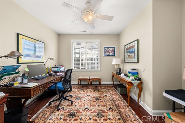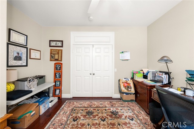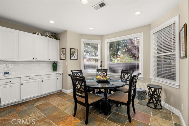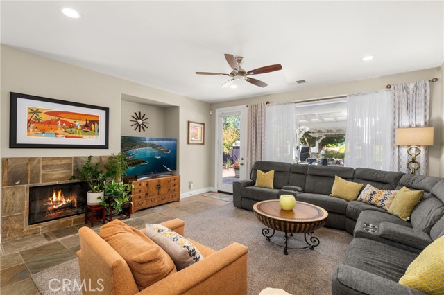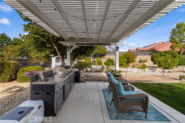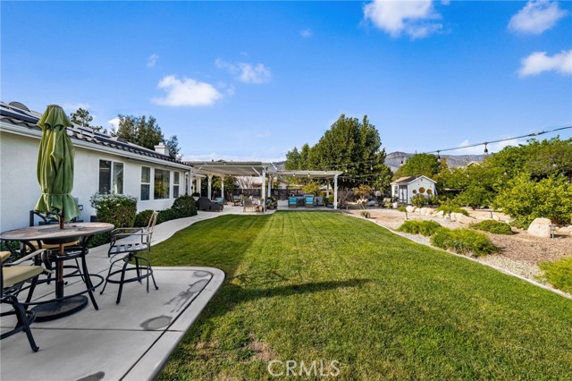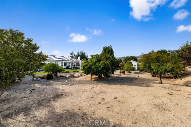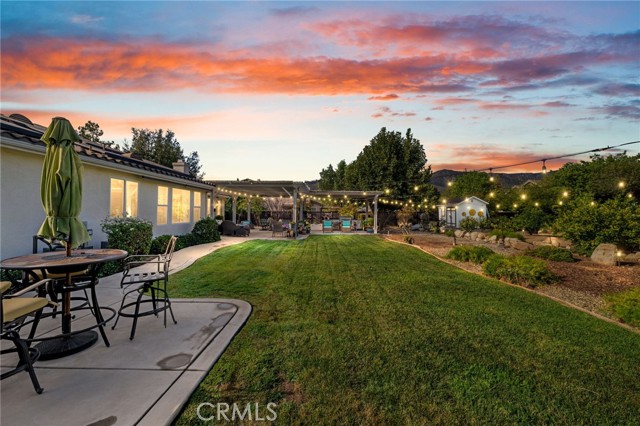 Welcome home to this beautifully maintained single-story retreat tucked at the end of a quiet cul-de-sac, where neighbors still wave hello and life feels a little slower without sacrificing convenience. Set on nearly half an acre of flat, fully usable land, this 4 bedroom (plus an office), 3 bath home offers over 3,100 square feet of living space designed for gathering and everyday comfort. Inside, you’ll find soaring ceilings, rich millwork framing every window and doorway, and timeless Quartzite flooring flowing through the main living areas. The remodeled kitchen is the heart of the home, with an oversized island, sunny breakfast nook, crisp white cabinetry, quartz countertops, and stainless steel appliances opening seamlessly to the family room with fireplace. The spacious primary suite features a coffered ceiling, backyard access, dual vanities, soaking tub, and walk-in closet, while the secondary bedrooms are generously sized, including a guest wing with remodeled bath and walk-in shower. Thoughtful details continue throughout, from built-in cabinetry in the garage to upgraded baseboards, wood flooring, and custom carpets. Step outside and discover an entertainer’s dream yard, complete with an expansive covered patio, BBQ island with sink and fridge, and multiple seating areas shaded by mature trees, including ten fruit trees and more than thirty others planted for beauty and privacy. Enjoy lemon, lime, orange, pomegranate, grapefruit, and fig, plus fragrant rosemary bushes. The manicured grounds are ready to enjoy today, yet the flat lot also offers incredible potential for the future. Plenty of space for both an ADU and a pool, with room to spare. A large shed with electricity adds storage or hobby space, and utilities are in place for a spa or fire pit. Here, you’re minutes from shopping and conveniences, yet the peaceful setting feels worlds away. With leased solar for energy savings, a three-car garage, and a welcoming neighborhood that truly feels like home, this property is the perfect blend of comfort, charm, and opportunity.