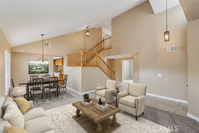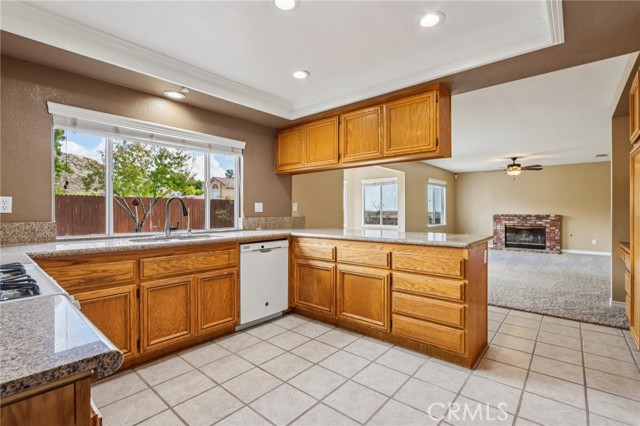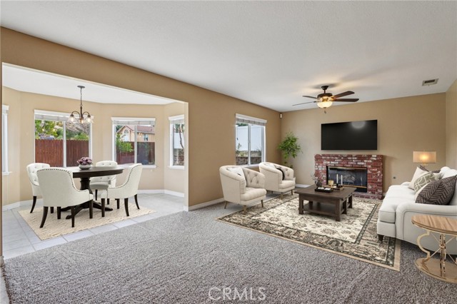 Beautiful 4-Bedroom, 3-Bath Home in Wildomar! NO HOA & VERY LOW TAXES. This charming home welcomes you with a bright entry featuring vaulted ceilings and an inviting formal living and dining room, perfect for entertaining. The kitchen offers granite countertops and opens to the spacious family room with a cozy fireplace, creating a warm and comfortable gathering space. A beautiful breakfast nook surrounded by windows fills the home with natural light and overlooks the backyard. The layout includes one bedroom and full bath conveniently located on the main floor, with three additional bedrooms upstairs, including a spacious primary suite with a relaxing sitting area. Recent updates include brand-new carpet, newer exterior paint, and upgraded finishes that enhance the home’s modern appeal. The pool-sized backyard is ideal for outdoor living, featuring a large patio area and plenty of room to design your dream yard. Additional highlights include a 3-car garage and a great cul de sac location. The home is just minutes from the 15 Freeway, making it perfect for commuters, and is close to grocery shopping, restaurants, and retail stores for added convenience. Don’t miss the chance to make this beautiful Wildomar home yours — it offers the perfect blend of comfort, location, and value!