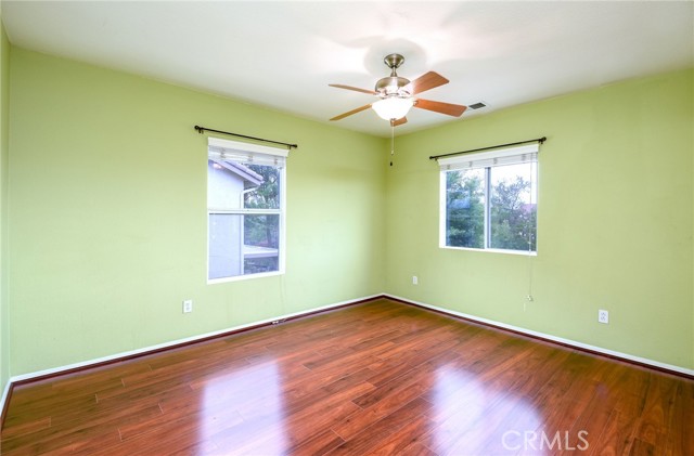 An Exceptional Residence in Winchester Welcome to a home where comfort, and modern living converge. This immaculate 4-bedroom, 3-bath residence is thoughtfully situated in one of Winchester’s most sought-after communities, offering a lifestyle defined by both sophistication and ease. Upon entry, you are greeted by an inviting open concept design, enhanced by rich wood and tile flooring that seamlessly blend warmth with contemporary style. The formal dining area and spacious family room provide ideal settings for intimate gatherings or festive celebrations, while the gourmet kitchen stands as the centerpiece of the home. Appointed with gleaming granite countertops, abundant cabinetry, and a sunlit breakfast nook, it is as functional as it is inspiring. A sliding glass door extends the living space outdoors, revealing a generous backyard perfect for alfresco dining and leisure. The first level features a full bedroom with a private bath ideal for multigenerational living or distinguished guest accommodations. Ascend the staircase to a serene primary suite, offering a spa-like retreat complete with dual vanities, a soaking tub, separate shower, and expansive walk-in closet with custom organizer system. Two additional bedrooms, a full bathroom, an oversized laundry room that expands into a large bonus closet and storage area, and a spacious loft provide ample space for both relaxation and productivity. The central air conditioning/heating system was replaced recently, providing energy efficiency and peace of mind. Beyond its walls, the residence enjoys proximity to acclaimed schools, shopping, dining, and convenient freeway access, ensuring that both daily needs and leisurely pursuits are always within reach. This is more than a home it is an invitation to live beautifully.