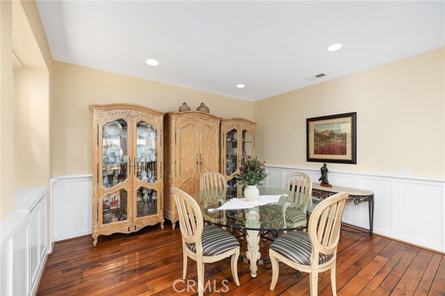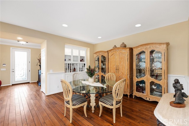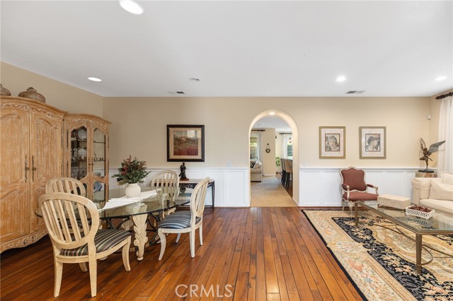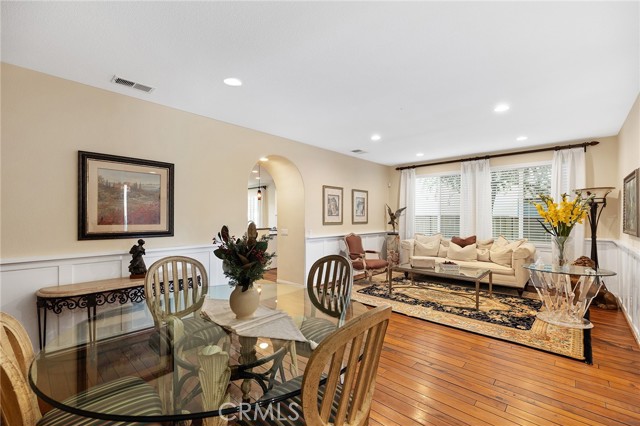 This former model home is the perfect blend of luxury and functionality at an unbelievable price! From the Tudor architectural touches and perfectly manicured front and back yards, to the gorgeous interior upgrades and the car enthusiast’s dream garage, this home has it all!!! From the moment you open the elaborate cathedral glass front door, you notice custom wood floors that lead you to the formal dining! Both living room and dining feature elegant chair railings and crown molding as well as a built in dry bar with wine rack and beveled glass cabinets. The kitchen offers beautiful glass pendant lights, granite/quartz countertops with stone tile backsplash and under cabinet lighting, a dedicated pantry, a dual height island with bar height seating space, and a kitchen dining area where you can enjoy the natural lighting and views of the beautifully landscaped backyard. The kitchen opens to the family room which showcases a fireplace and built in media center. The primary suite also highlights views of the backyard with side to side windows and a primary bathroom with porcelain tile countertops, a big bathtub and stone tile flooring as well as a spacious walk in closet. There are two bedrooms and a full bathroom down from the primary suite, plus a laundry room with utility sink and a walk in closet. On the right side of the home there is also a full size office which could make a great guest bedroom with a hallway walk in closet and a half bathroom. The home also showcases surround sound speakers, crown molding, decorative panel cabinet doors, mirrored closet doors, 3 inch plantation shutters, custom drapes and so much more! If you think this is impressive, wait until you see the garage! The 3 car oversized garage feels more like a man cave or shop with epoxy flooring, custom lighting and a second motorized garage door. Finally the backyard will allow you to relax with an Arizona room with lattice patio, and a separate patio area with stone pavers perfect for your grill and outdoor kitchen. The landscaping offers a orivate green respite for you to relax in the evening. Just steps from the park, playground and sports courts, this home is also minutes from shopping and dining and it’s ready for you!