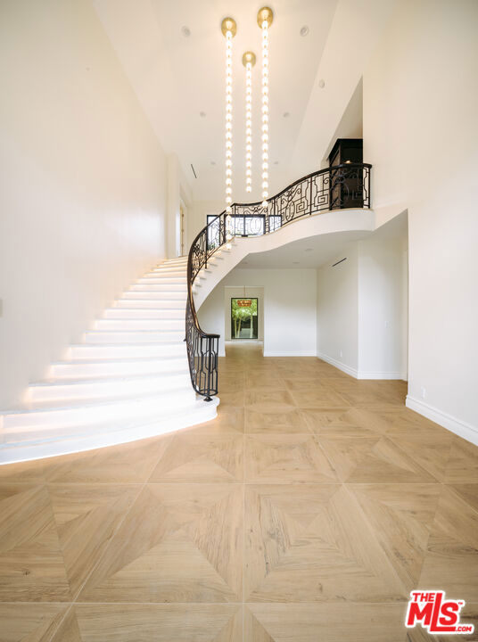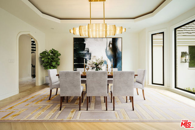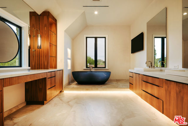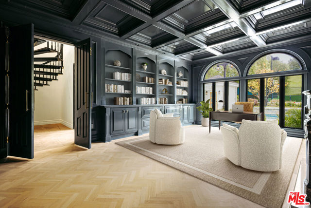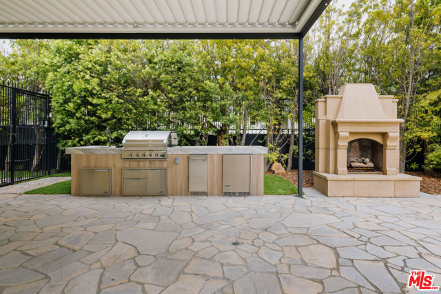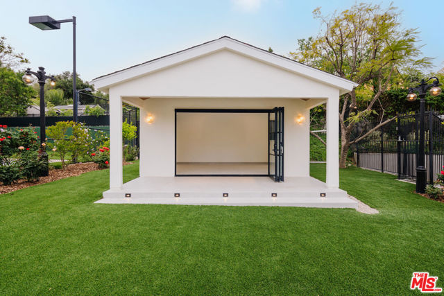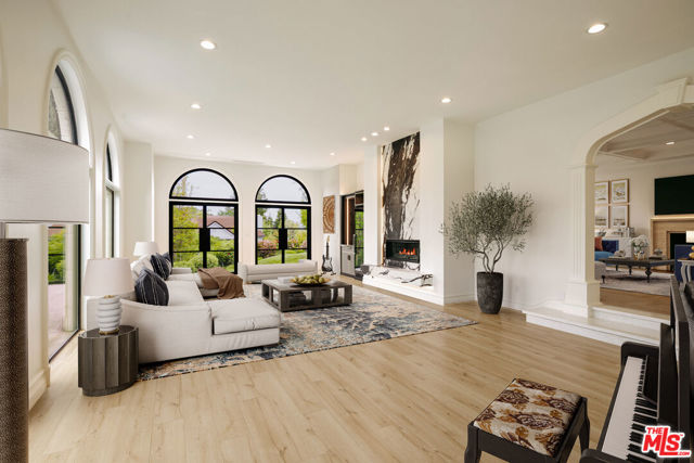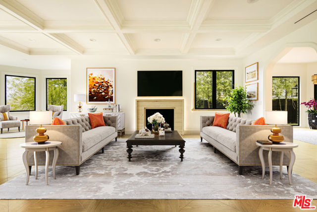 Welcome to 20608 Chatsboro Drive, a timeless estate in the heart of Woodland Hills that blends modern luxury with classic elegance. Set behind gates on a sprawling lot, this grand residence makes a bold statement with its circular motor court, stately columns, and manicured landscaping. Inside, a soaring two-story entryway sets the tone for the home's impressive scale and sophisticated finishes. Wide-plank wood and tile floors flow through expansive living spaces, including a formal living room with arched windows and a striking marble fireplace, and a coffered-ceiling family room with seamless indoor-outdoor flow. The chef's kitchen is a masterpiece, featuring waterfall stone countertops, custom cabinetry, and top-of-the-line appliances. The opulent primary suite offers a tranquil retreat with dual fireplaces, bay windows, and a boutique-style closet. Spa-inspired bathrooms throughout the home feature designer finishes, floating vanities, and backlit mirrors.Outdoors, resort-style amenities await, a sparkling pool and spa, fully equipped outdoor kitchen, stone fireplace, and a lighted full-size basketball court. A detached flex space provides the perfect studio, gym, or guest retreat. This estate is the ultimate blend of comfort, privacy, and entertaining power in one of the Valley's most coveted neighborhoods.