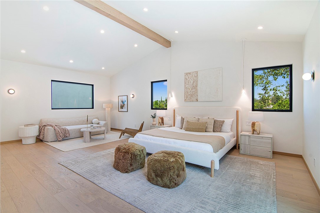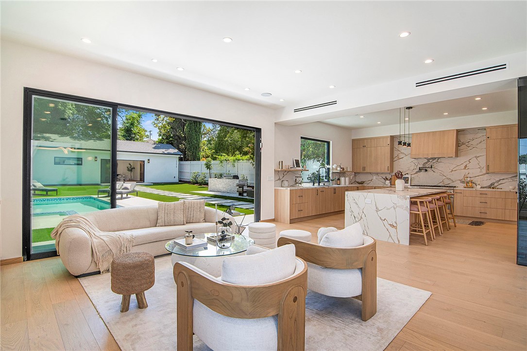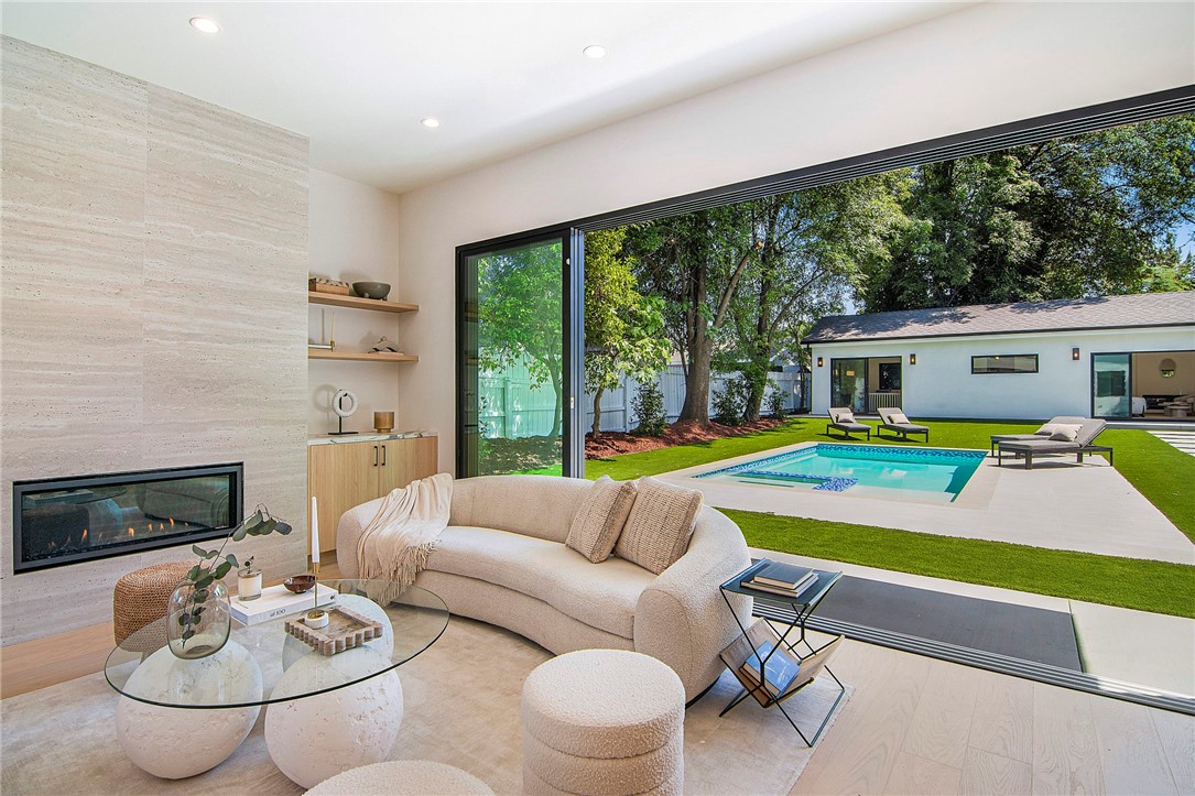 Don't wait for Open Houses to see....call any time for appointment! Newly completed, this property is a rare blend of luxury, privacy---crafted with designer finishes, and sleek, modern materials throughout both the main residence and the legally permitted ADU (with its own address). Step inside the stunning main house to discover 9’10†high ceilings, surround-sound speakers, designer lighting, solid oak doors, Roman stone accents and wooden flooring. The chef’s kitchen features top-of-the-line Thermador appliances, porcelain countertops, immense pantry and other thoughtful storage solutions. With an open floor plan, the kitchen flows seamlessly into the living room (with a gas fireplace), and the dining that opens to the interior patio. Every modern upgrade has been considered: dual hv/ac systems with separate thermostats, solar panels, tankless water heater, EV wiring, new electrical & plumbing throughout. The primary suite is a retreat, featuring a private balcony overlooking the backyard, a cozy gas fireplace, a huge walk-in closet, and a spa-inspired bathroom complete with soaking tub and a luxurious dual-entry shower. All four bedrooms are ensuite; and the ADU offers an additional 2 bedrooms, 2 bathrooms, living room with electric fireplace, full kitchen and in-unit laundry. Step outside to enjoy the landscaped backyard--featuring a sprawling lawn, brand-new pool and spa, a fire pit, and a built-in outdoor kitchen. Nestled in a family-friendly neighborhood just moments from premier shopping and dining at The Village, Westfield Topanga, and Calabasas Commons; and zoned for top-rated El Camino Real and Hale Charter Schools.