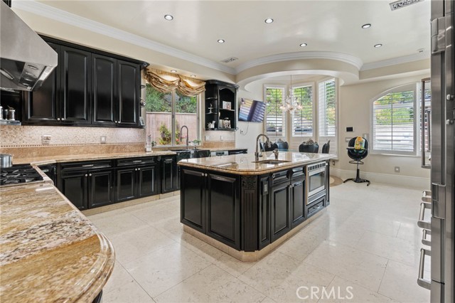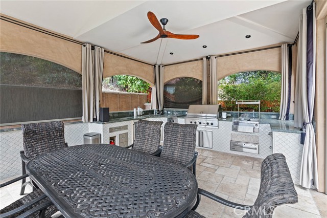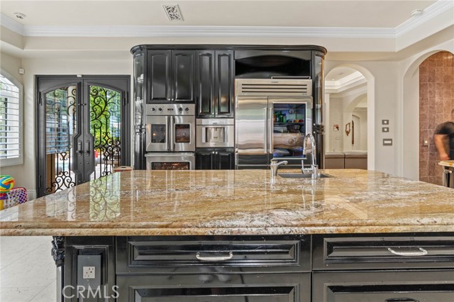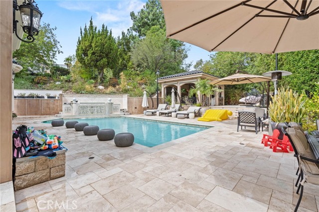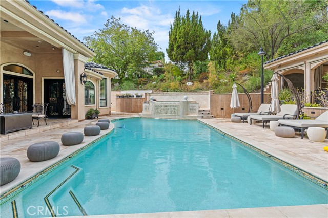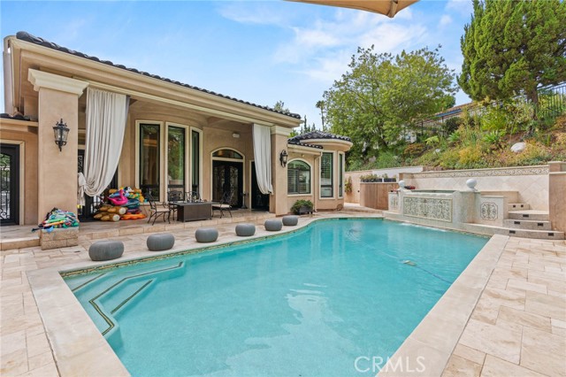 Built in 2008, this single-story gated Mediterranean Villa is an architectural masterpiece that combines privacy, prestige, and unmatched craftsmanship. A dramatic entry with soaring ceilings, imported marble with onyx inlay, and 24" Italian limestone floors sets the tone for the open, elegant floor plan. Designed for grand entertaining, Milgard French doors create seamless indoor-outdoor living, opening to travertine-tiled patios, a PebbleTec pool with Bellagio-inspired mosaic stone coping, an elevated spa, and a cascading waterfall with jet sprays. The outdoor kitchen and loggia are fully equipped with granite counters, Viking grill, warming drawer, and refrigerator—perfect for California living at its finest. The chef’s kitchen features custom solid hardwood and beveled glass cabinetry, a large granite island, and professional-grade Miele and Thermador appliances. The primary suite offers a luxurious retreat with a spa-like bathroom and oversized walk-in closet. Spacious secondary bedrooms each feature lavish en suite baths. Additional highlights include a grand living room, formal living room with full bar, elegant dining room, premium interior and exterior lighting, and fully owned solar. Every detail of this trophy estate reflects uncompromising quality and timeless design. Buyer’s agent and buyer are advised to perform their own due diligence on all information provided in this listing. Seller and seller’s agent make no guarantees and shall not be held responsible for any inaccuracies. Major Price Just Reduced! Motivated Seller – Don’t Miss This Opportunity, Call Agent Today!