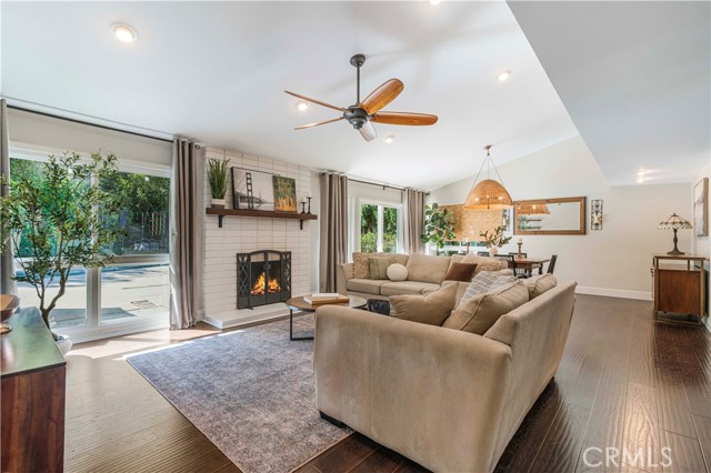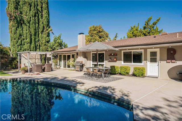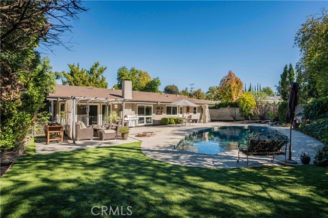 Welcome to Hidden Estates, one of Woodland Hills’ most sought-after neighborhoods! This Calabasas-adjacent 3-bedroom, 2-bath home blends modern updates with timeless California charm. Situated on a spacious private lot, the property features drought-tolerant landscaping, artificial turf in the front and back, and a sparkling pool perfect for year-round entertaining. Inside, you’ll find vaulted ceilings, big windows with abundant natural light, and a gas and wood-burning fireplace anchoring the open-concept living space. The remodeled kitchen boasts a large island that opens to the dining and family room, ideal for gatherings. The primary suite has been beautifully renovated with a luxury wet room featuring a soaking tub and dual showers. A bonus room off the kitchen provides the perfect spot for a home office, guest suite, or playroom. With newer windows throughout, updated bathrooms, and a move-in-ready design, this home offers the best of Woodland Hills living—top-rated schools, easy freeway access, and total privacy in the backyard oasis.